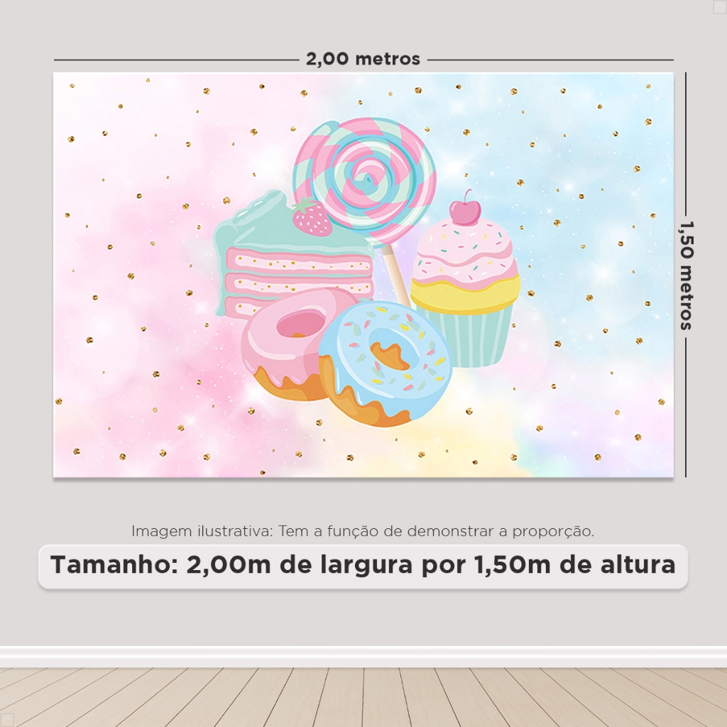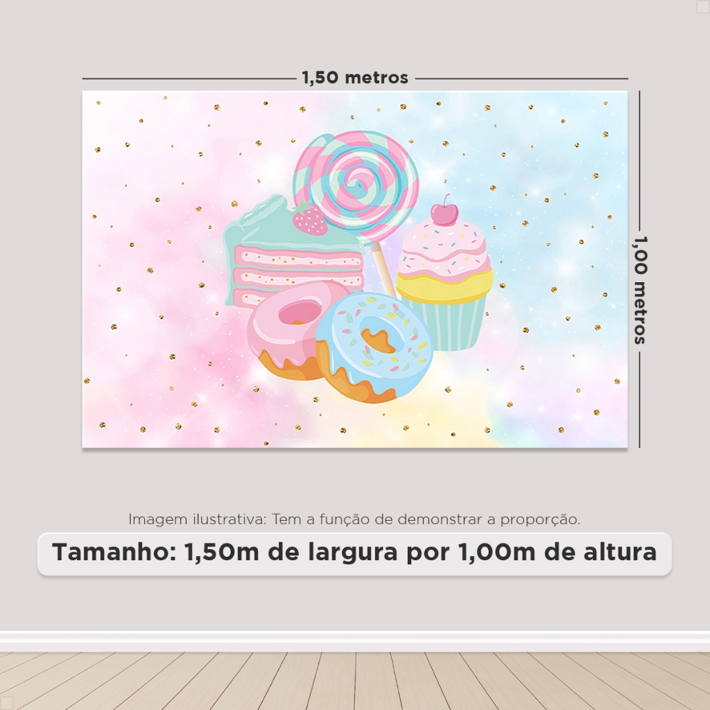 Painel De Festa Retangular Doces Horizontal Sublimado 3D Em Tecido Decorativo