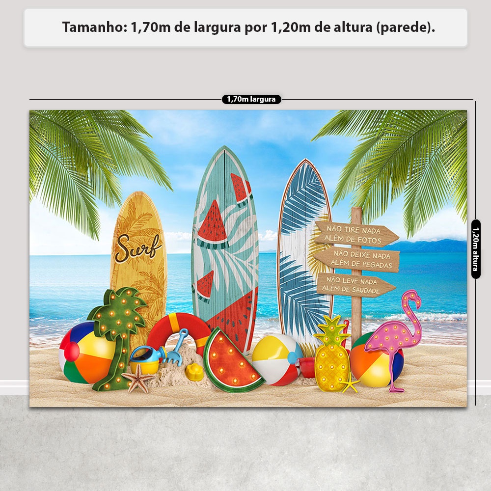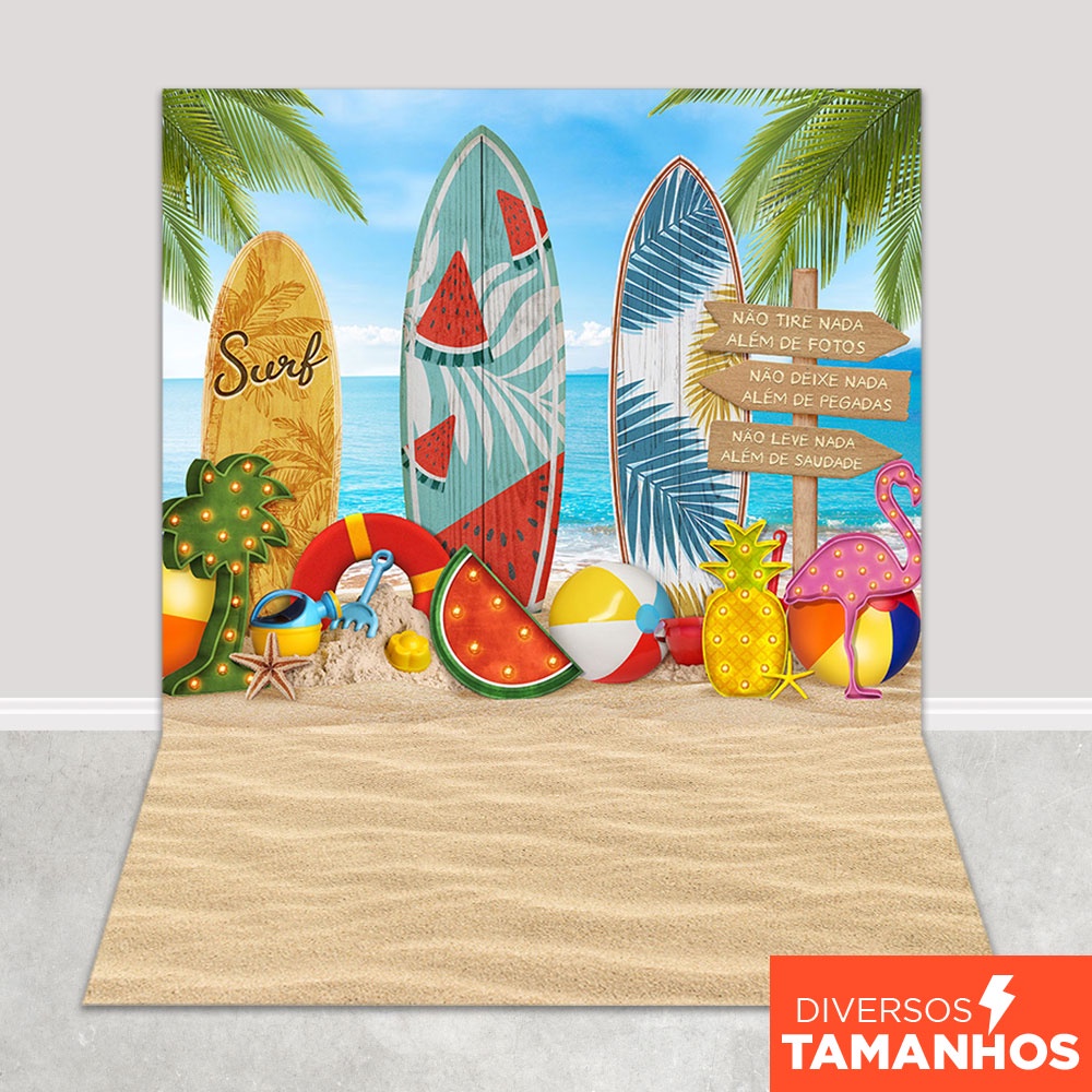 Painel Fundo Fotográfico Praia Verão Cenário Surfista Sublimado Em Tecido - FFP-138