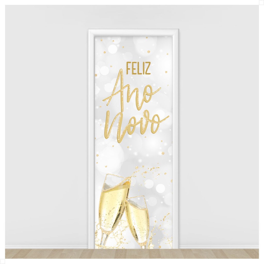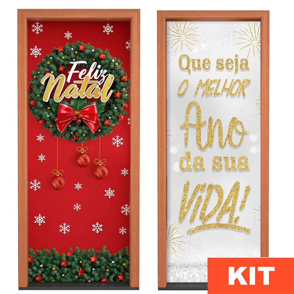 Kit 2 Capa de Porta Natal + Ano Novo Em Tecido Painel Veste Porta Decorativo Sublimado 0,80x2,10m