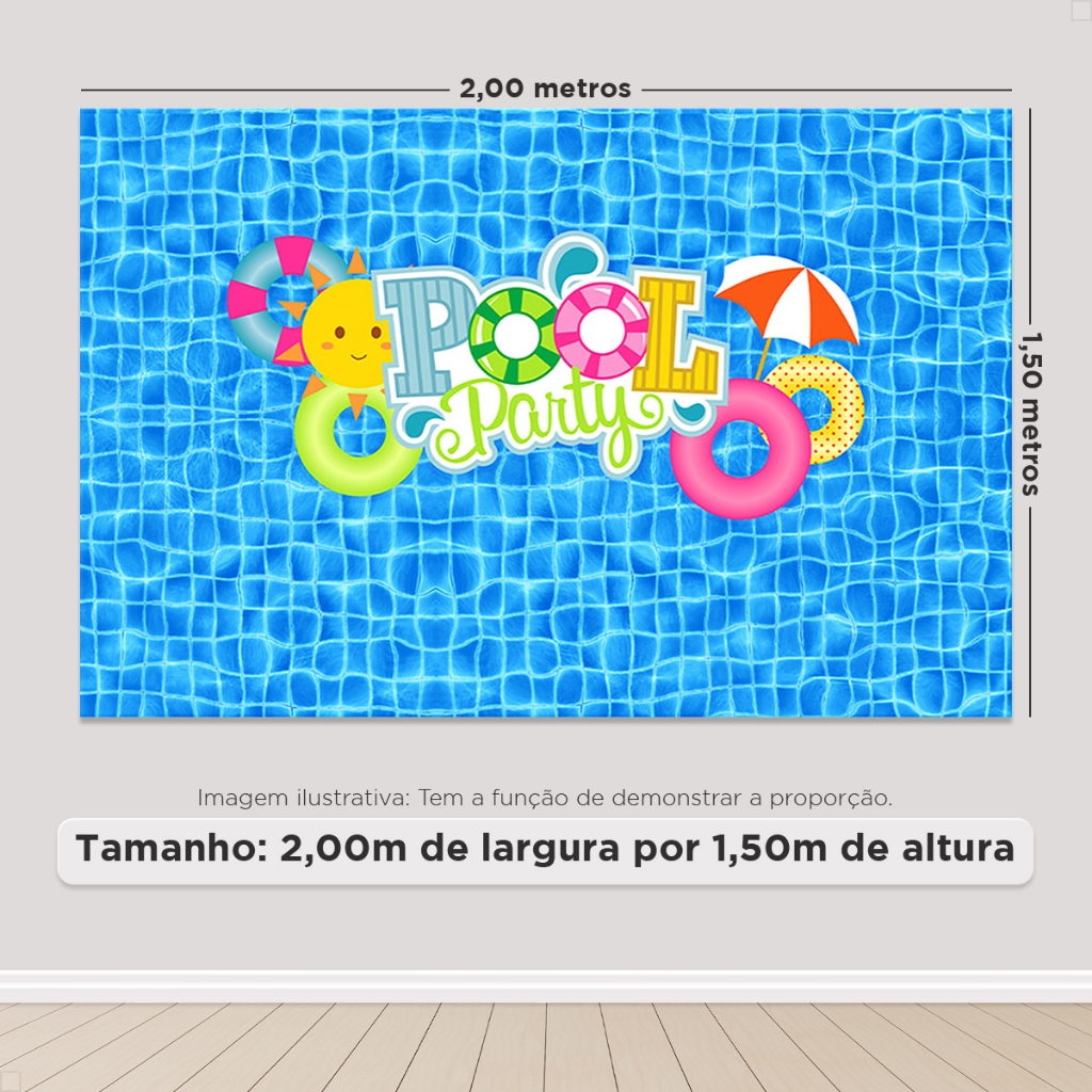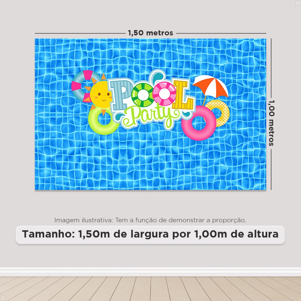Painel de Festa Pool Party Piscina Retangular Horizontal Sublimado 3D Em Tecido Sublimado