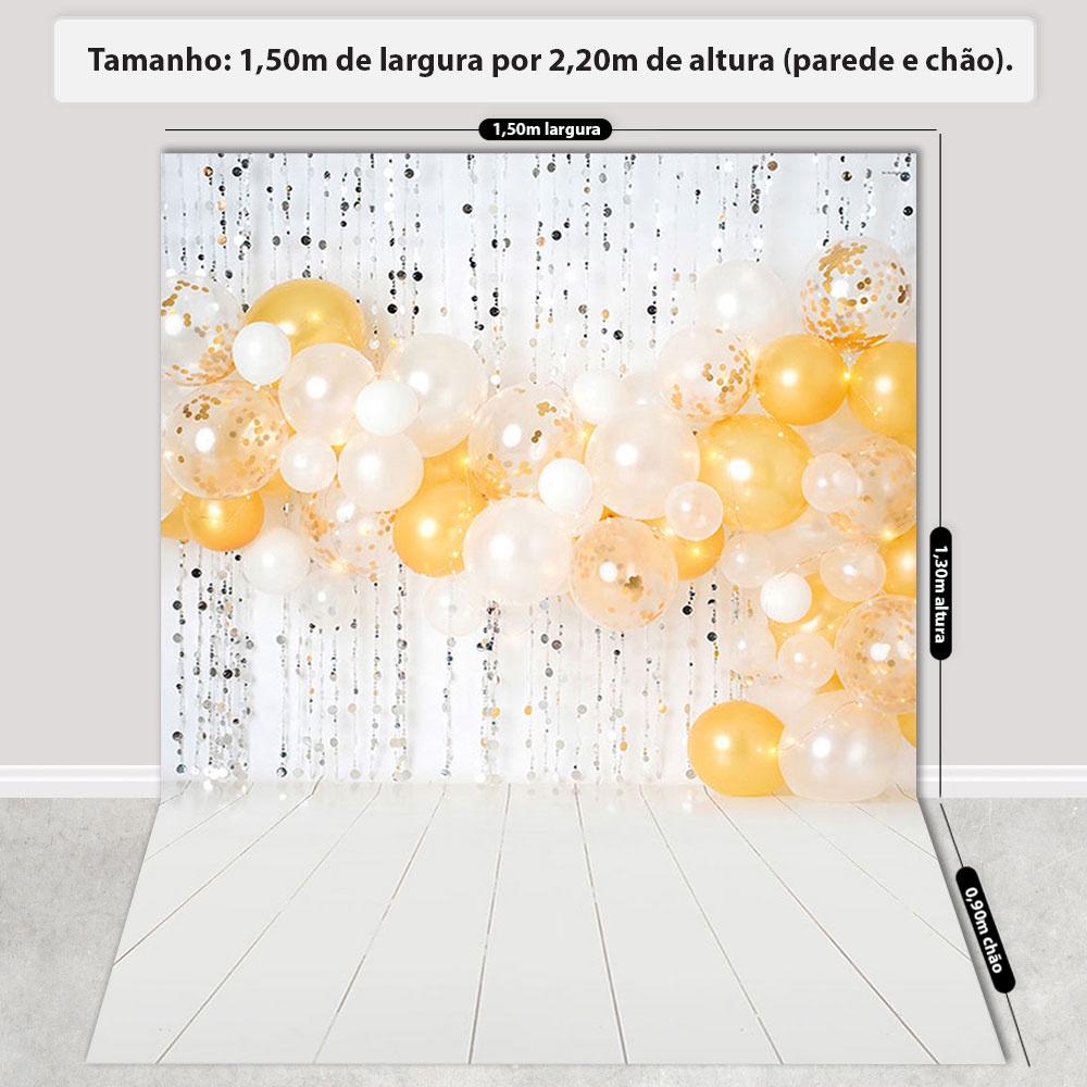 Fundo Fotográfico Smash The Cake Balões Dourados Em Tecido FFC-750