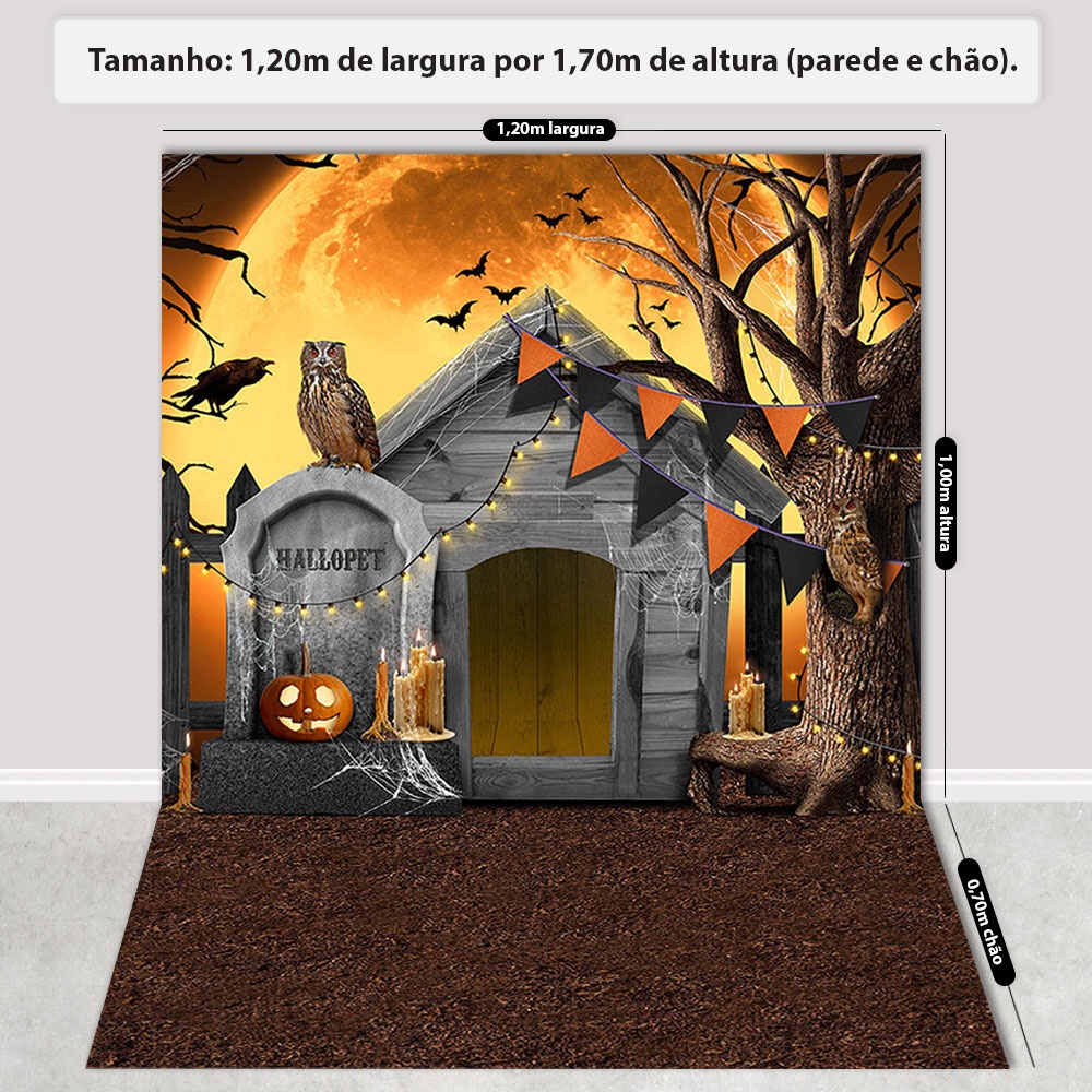 Fundo Fotográfico Pet Halloween Cenário Cemitério Painel Em Tecido Sublimado 1,20x1,70m - PET-79