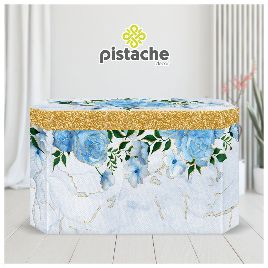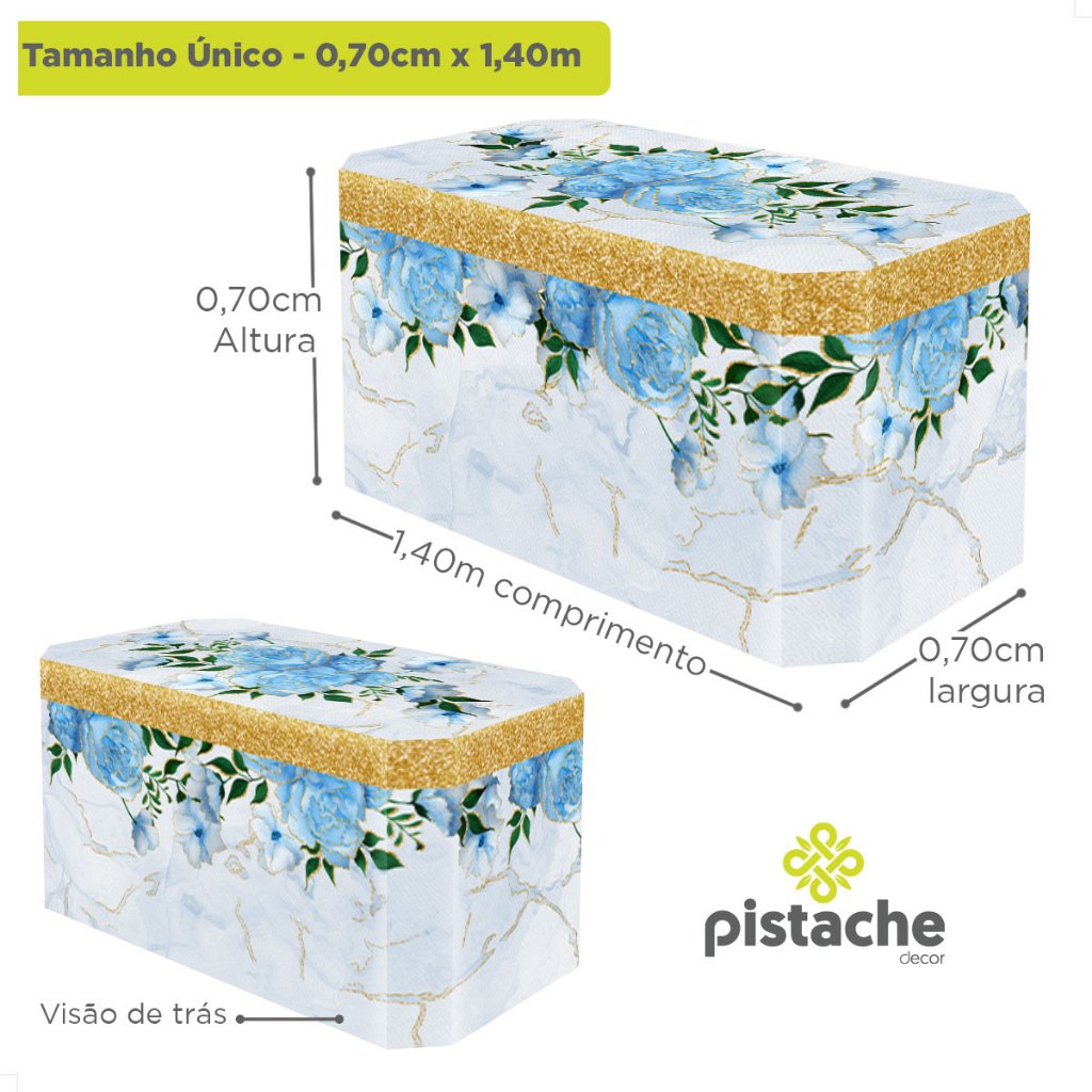 Capa Forro de Mesa Decoração Floral Azul Mármore Festa Toalha Em Tecido Veste Fácil - MSA-97