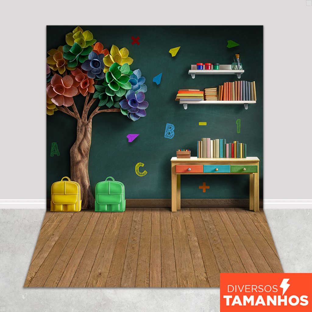 Fundo Fotográfico Formatura Infantil Cenário Sala de Aula Em Tecido Sublimado - FFC-914