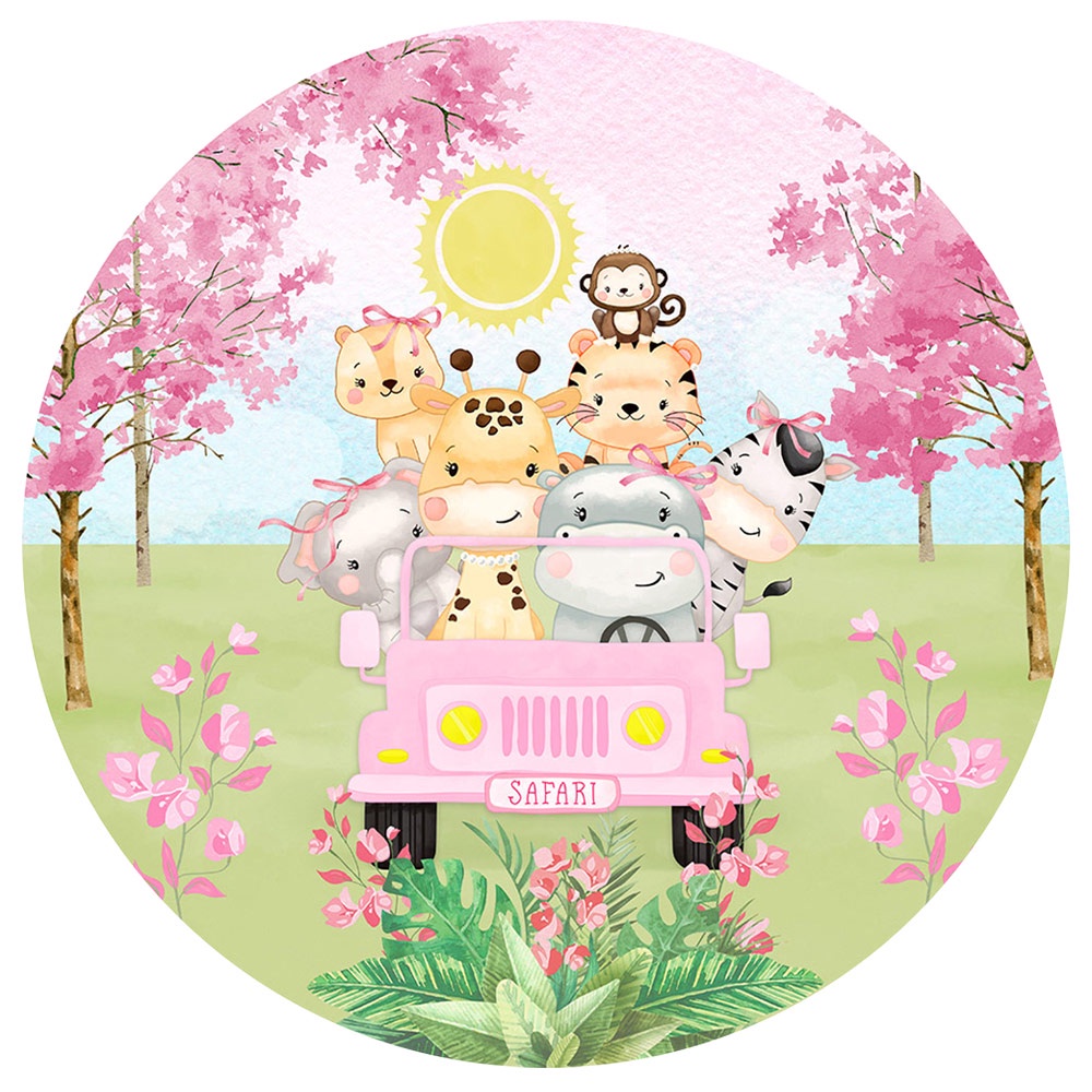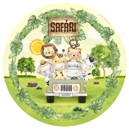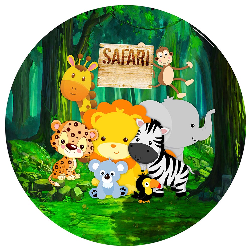 Painel Redondo Festa Safári Em Tecido 1,50m Com Elástico Sublimado - Diversos Modelos
