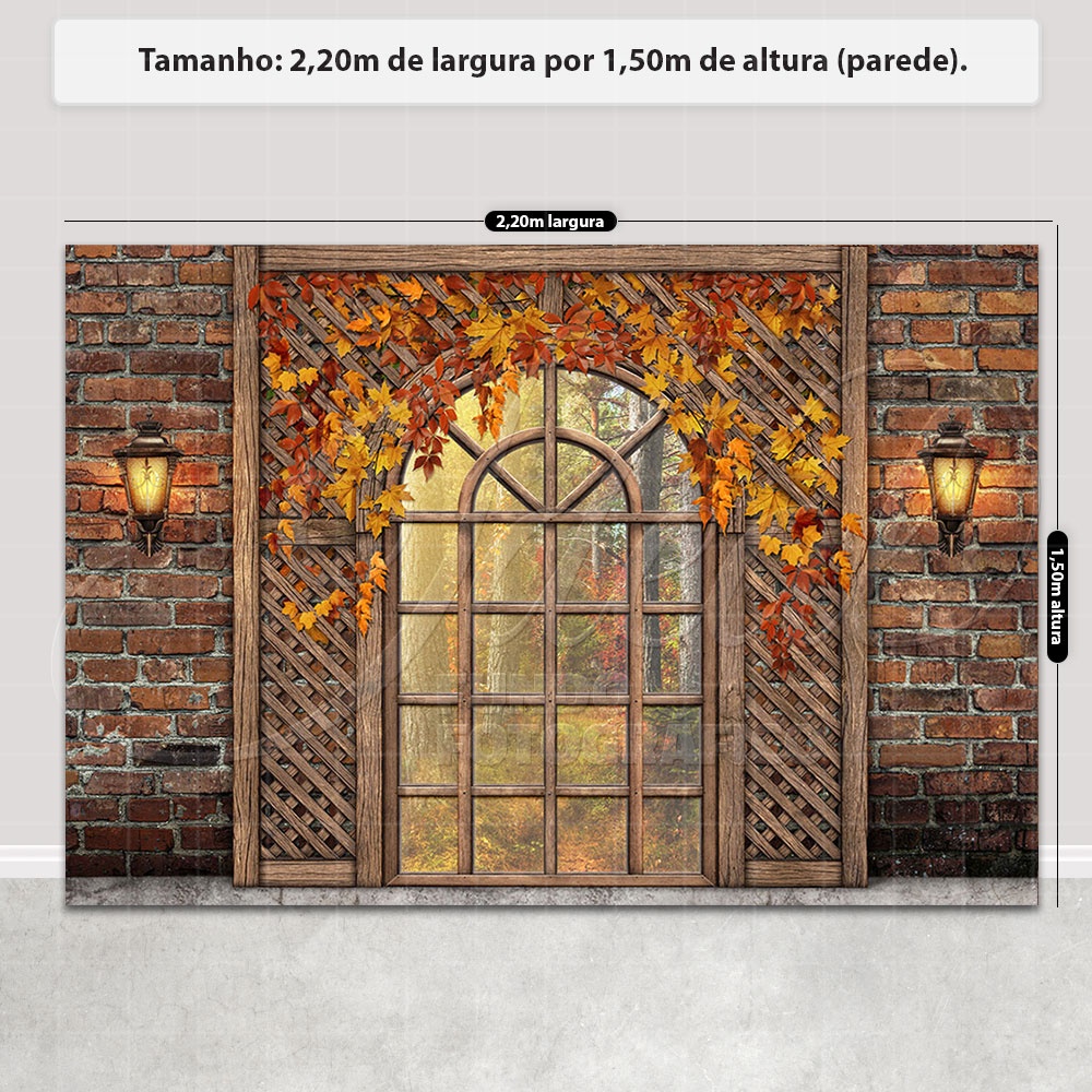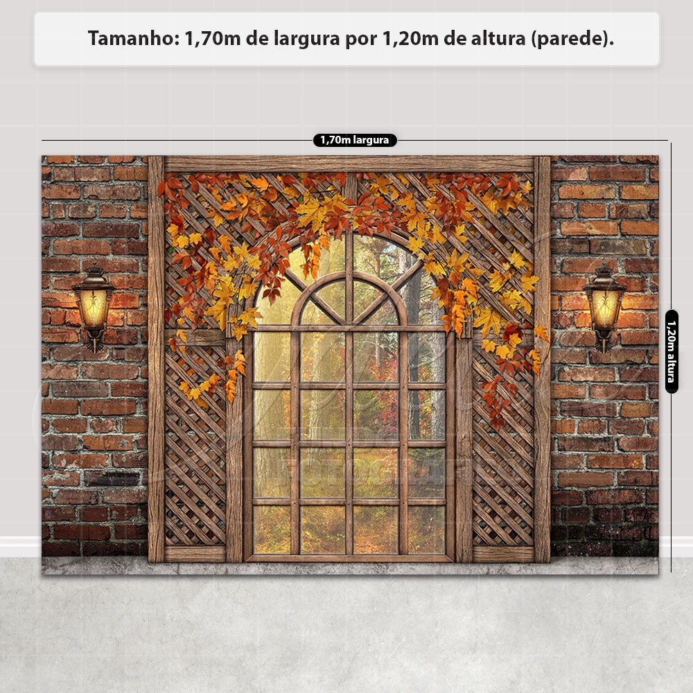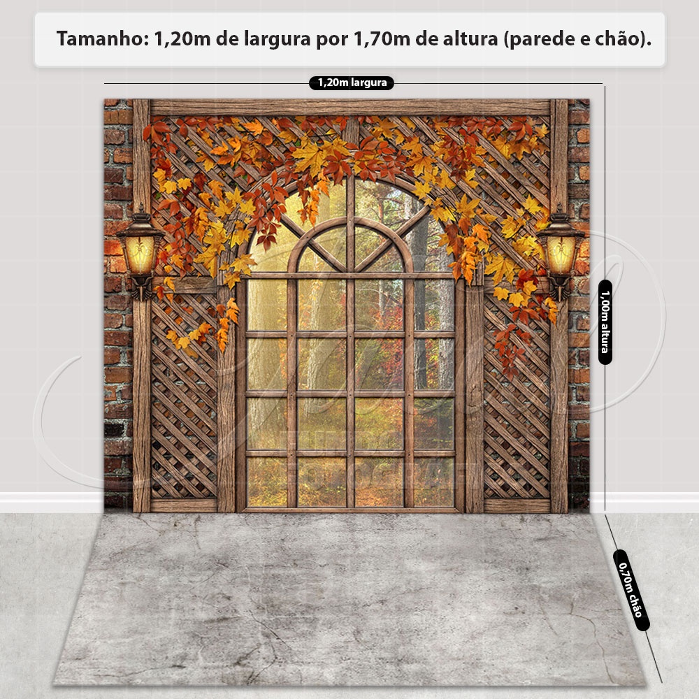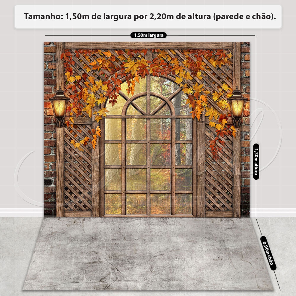 Fundo Fotográfico Outono Cenário Janela Painel Em Tecido Sublimado - FFC-776