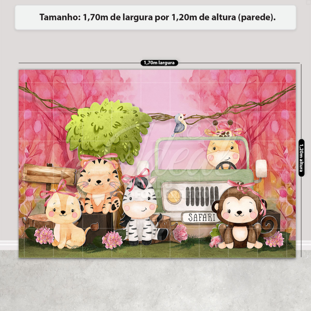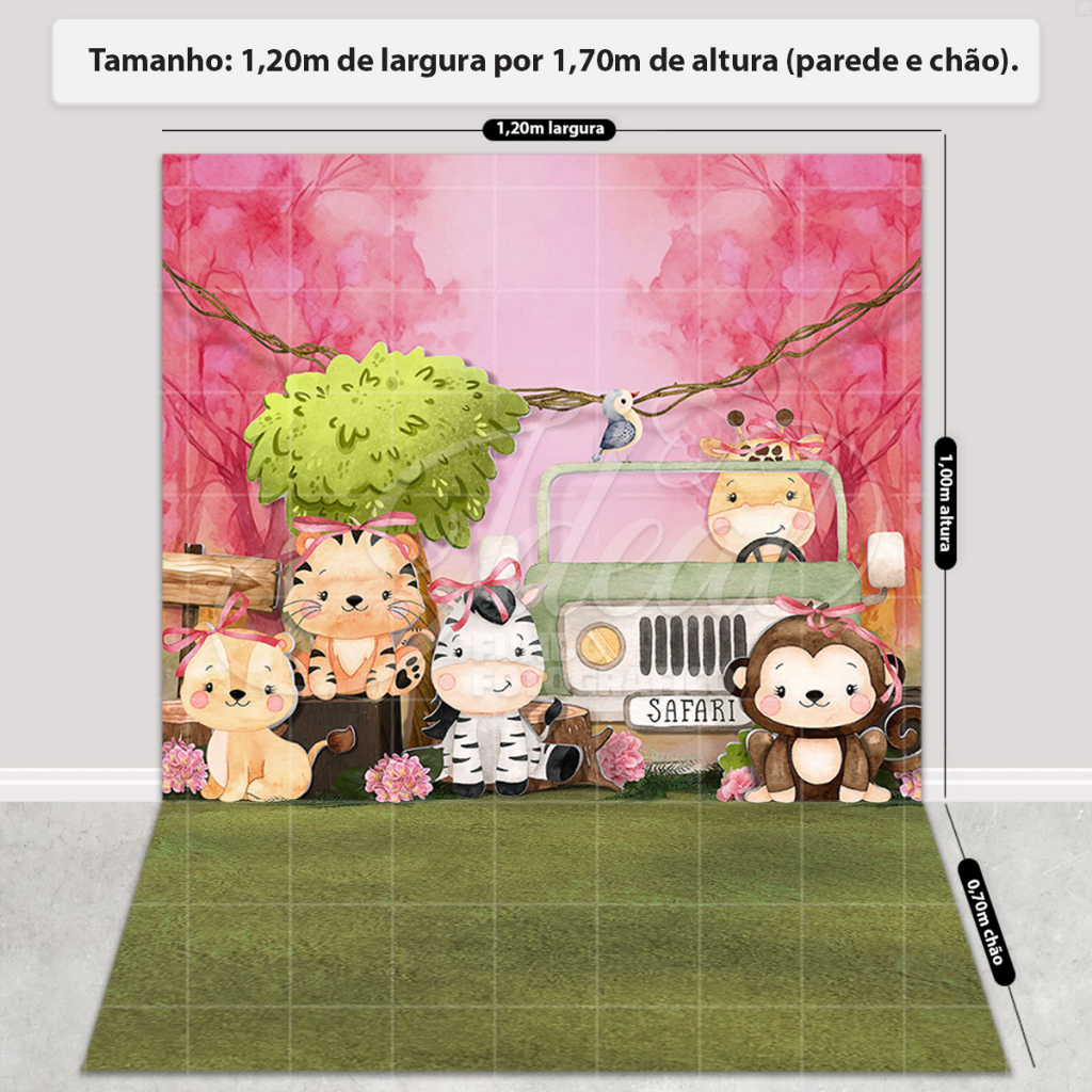 Fundo Fotográfico Dia das Crianças Safári Rosa Exclusivo em Tecido FFC-871