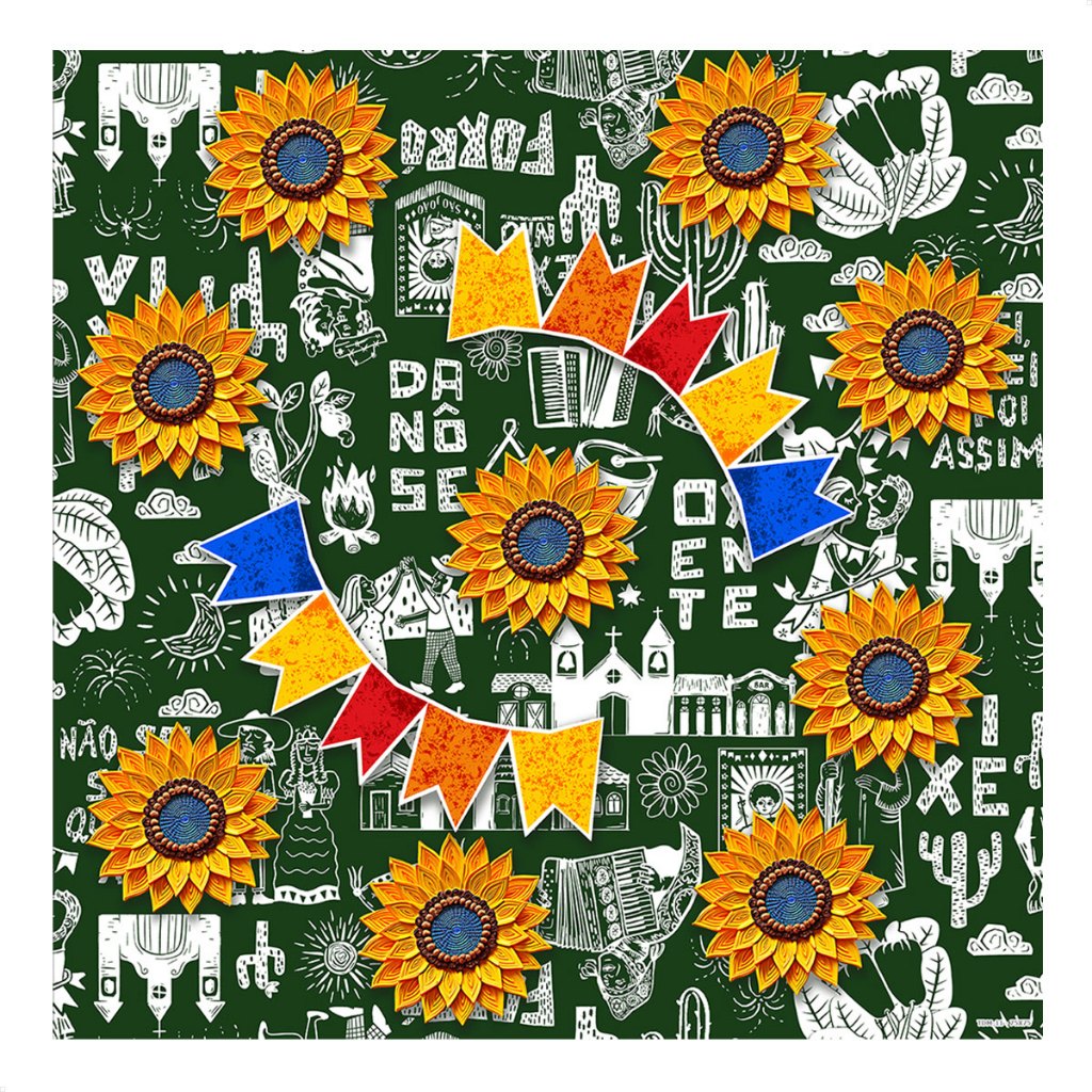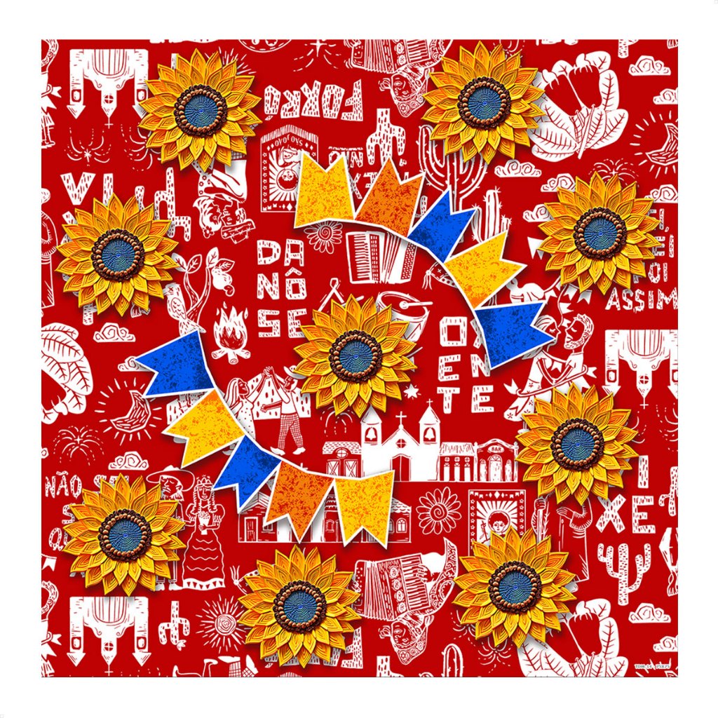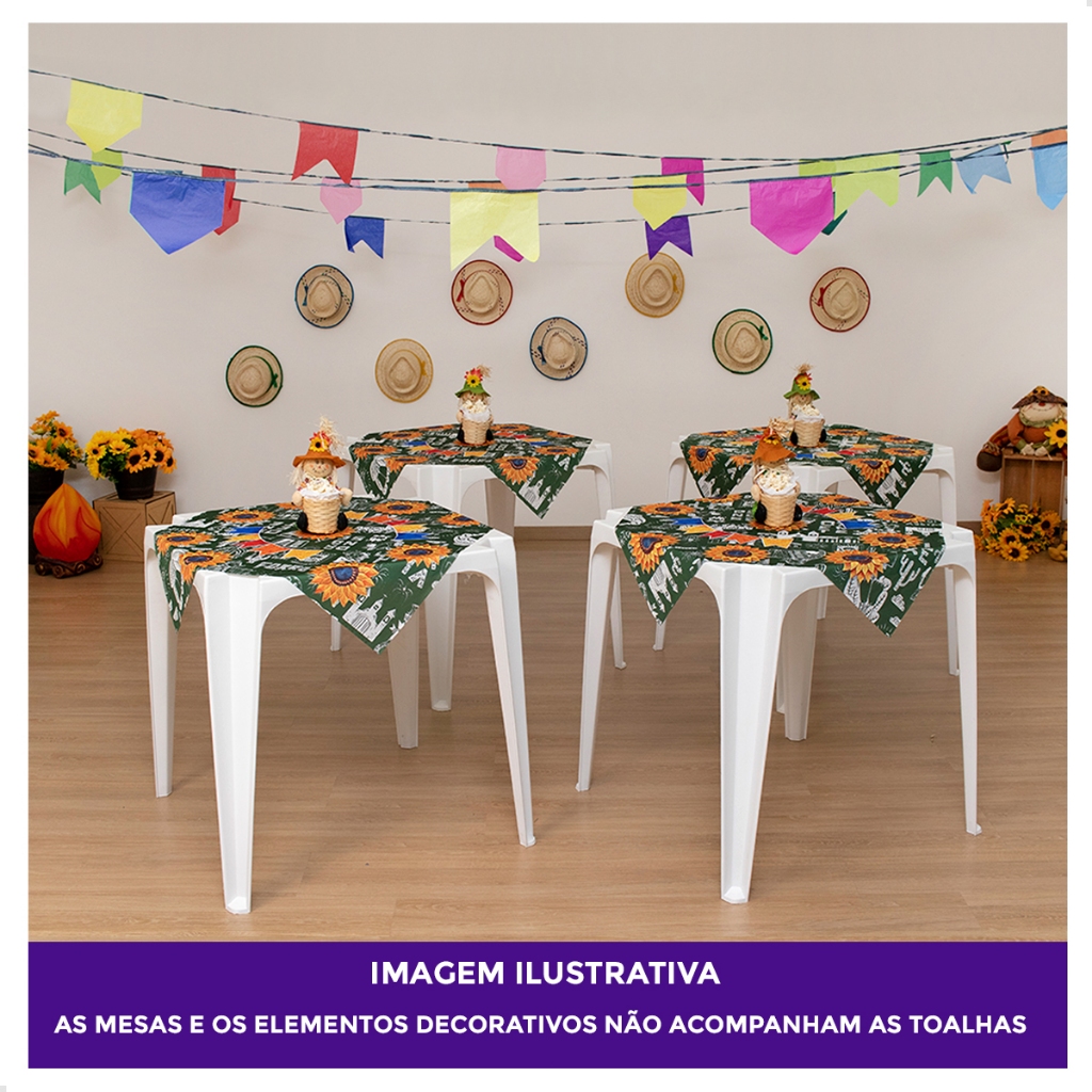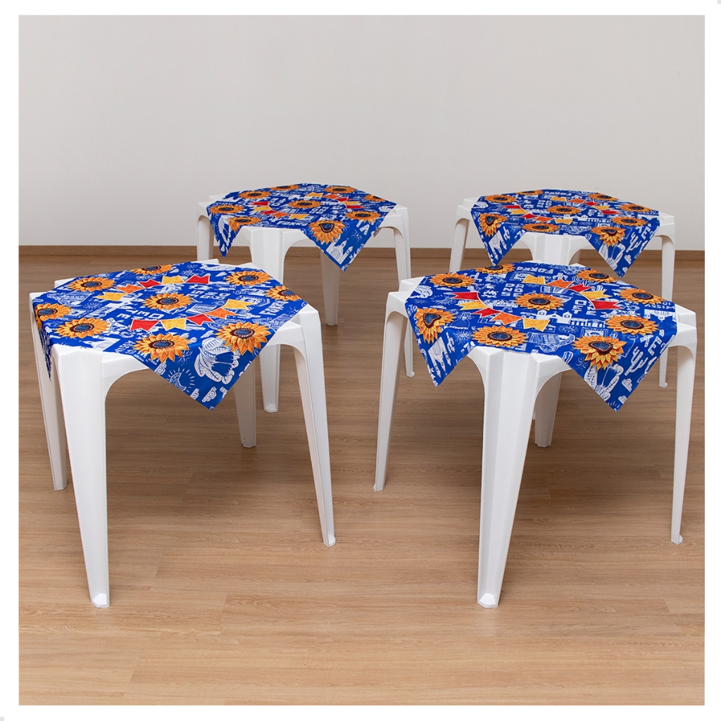 Jogo De Toalhas de Mesa Festa Junina Tecido 75x75cm 4 Unidades