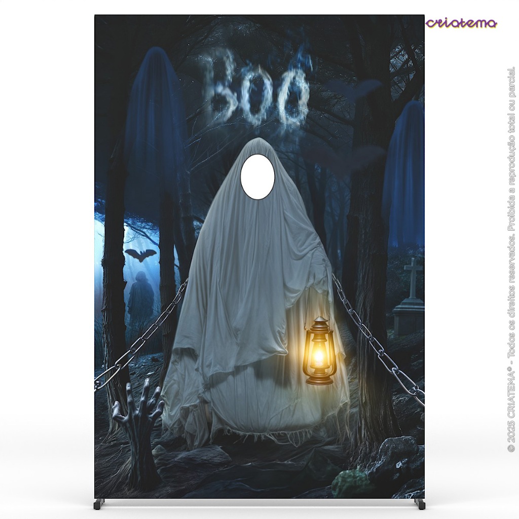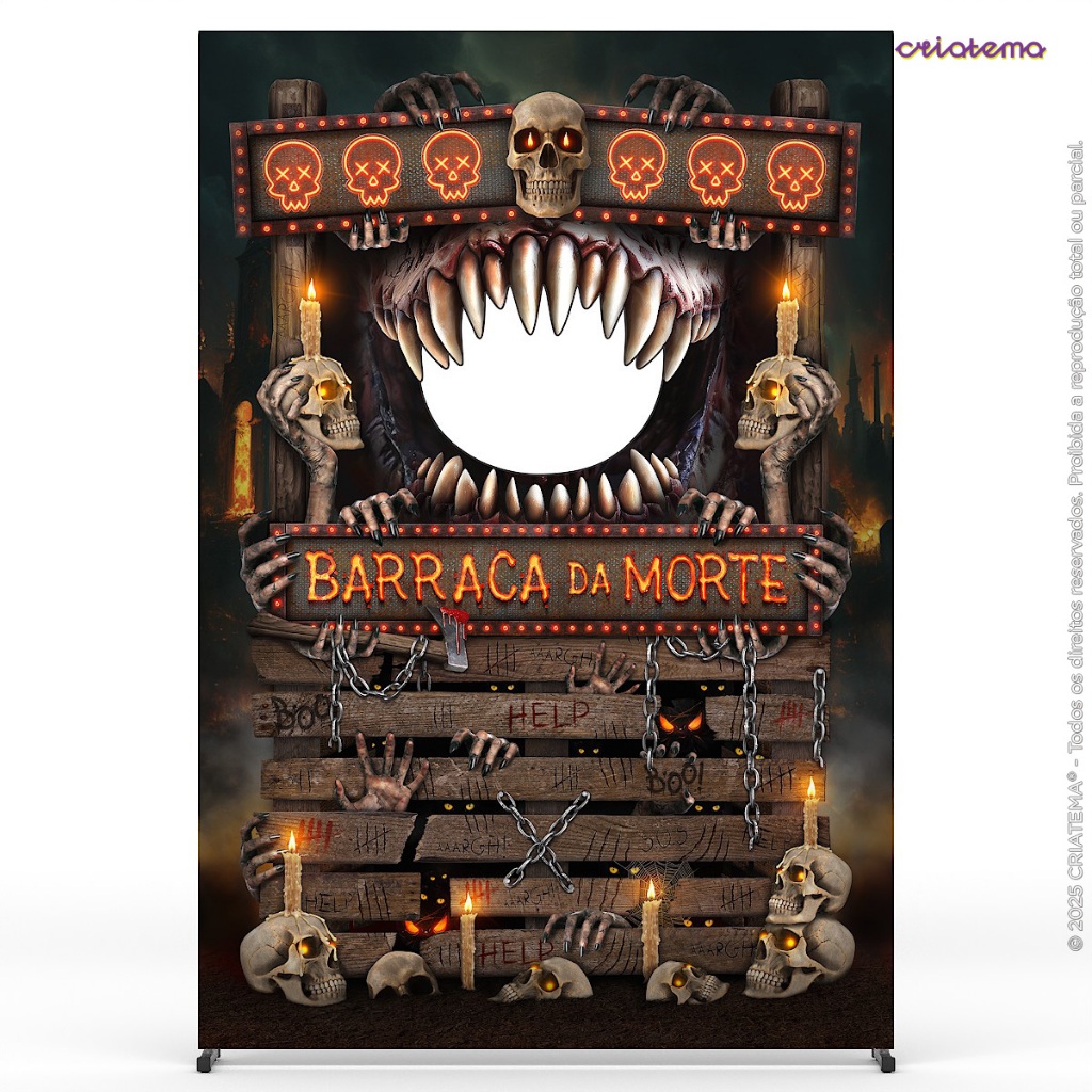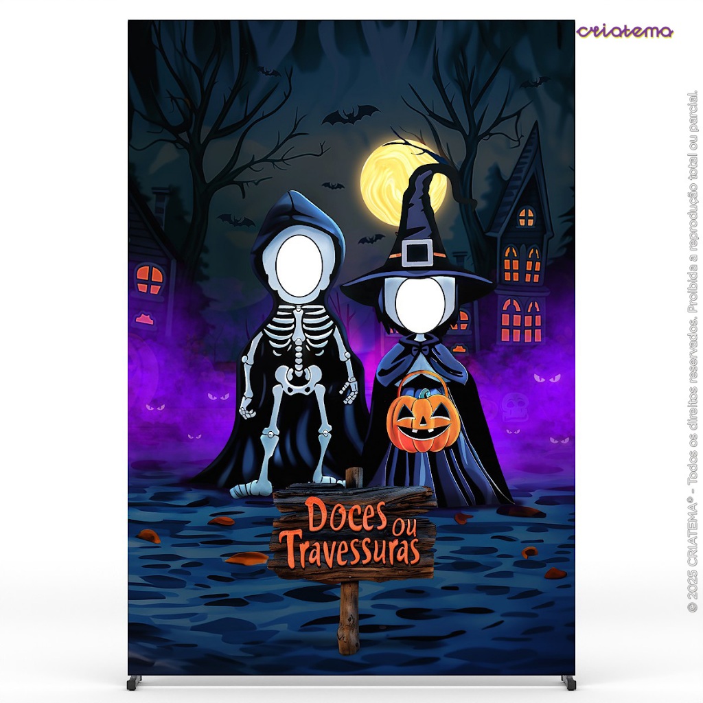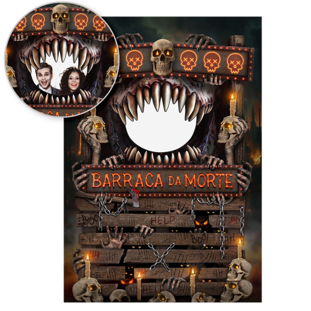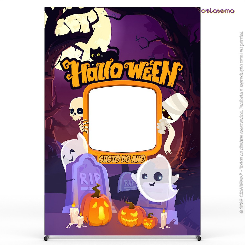 Painel de Festa Decoração Halloween Vazado Interativo Retangular Lateral Sublimado Tecido 1,50x2,20m