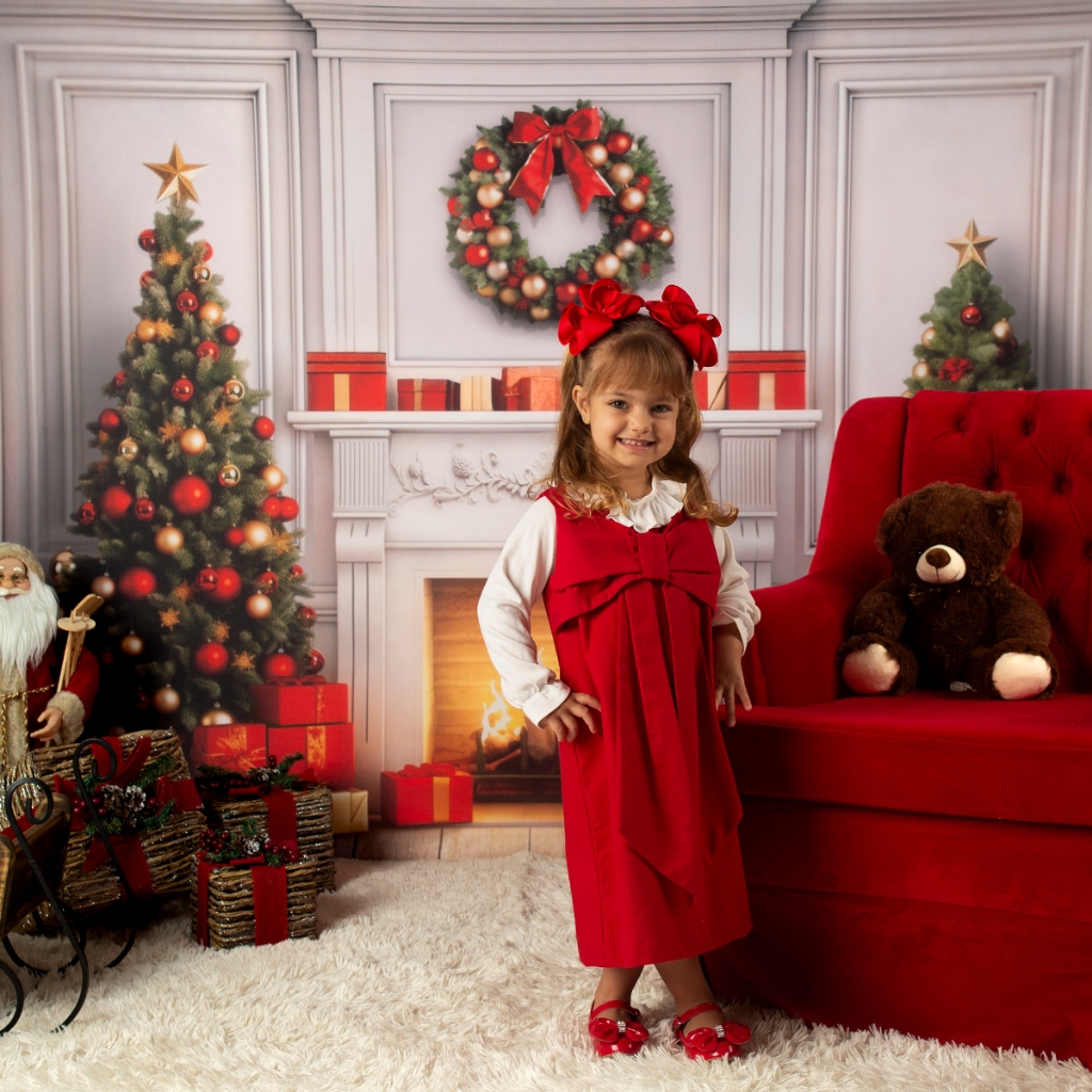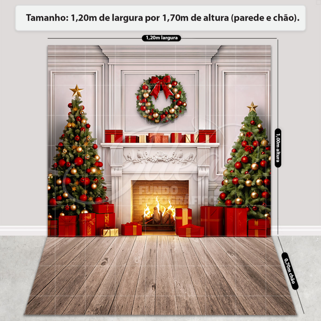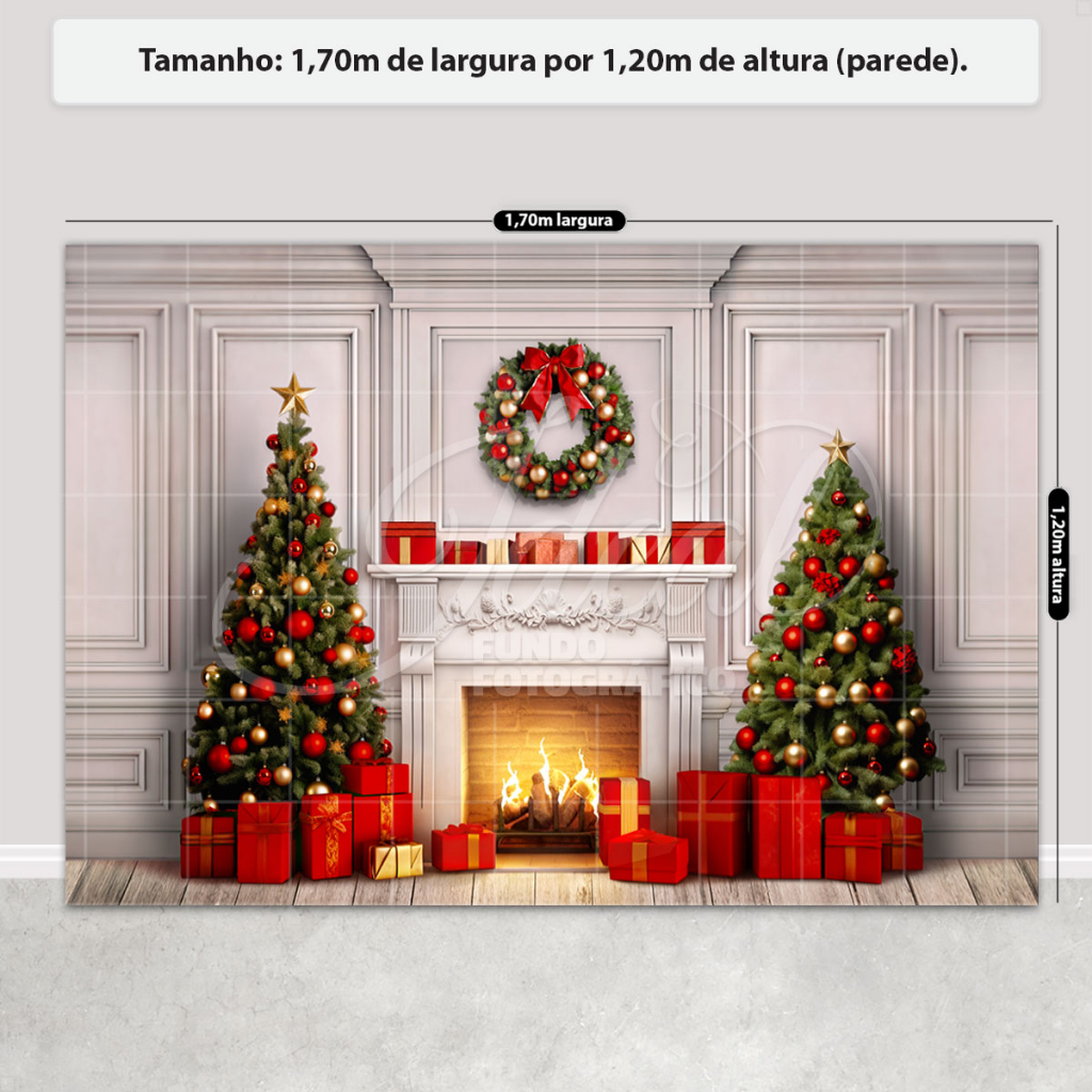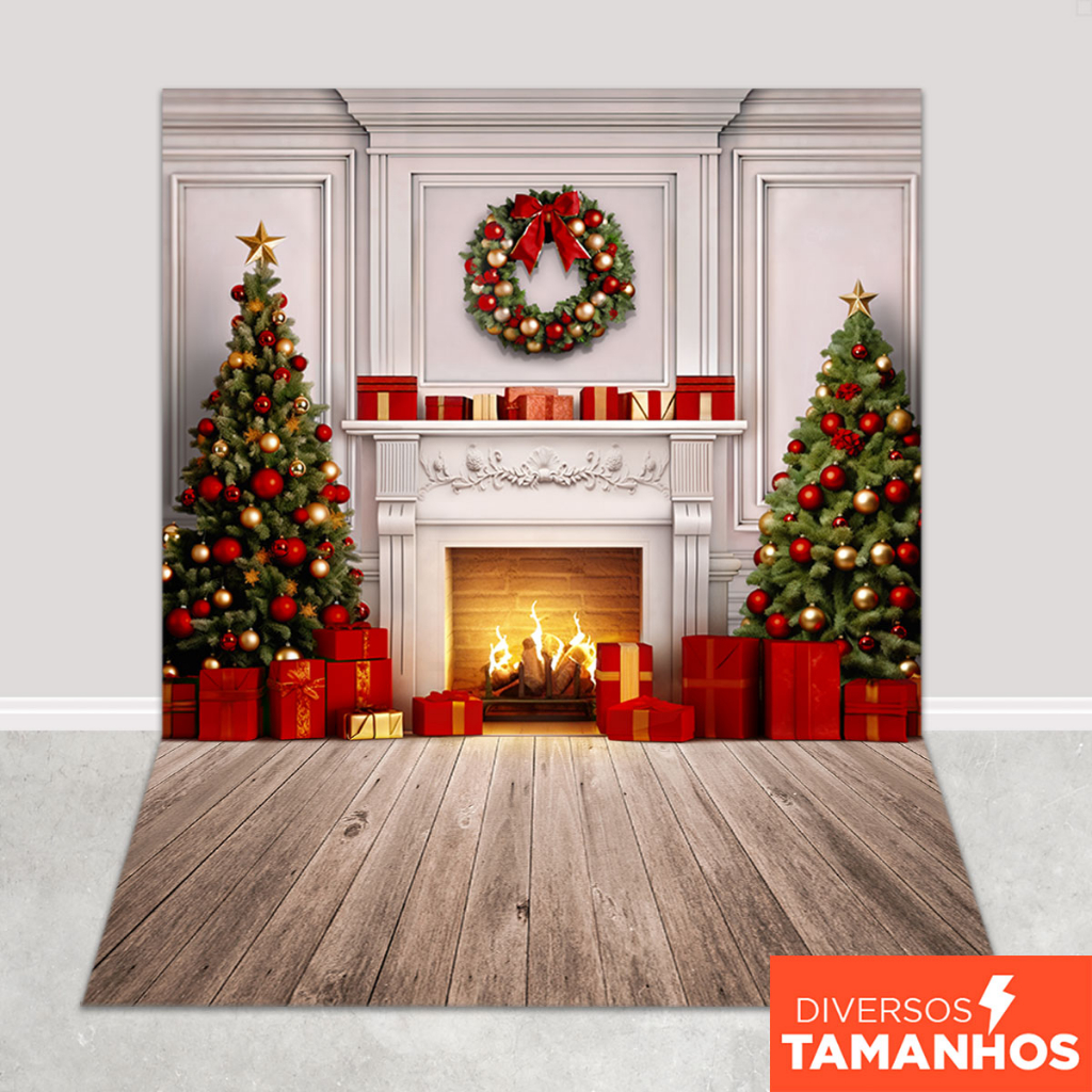 Painel de Natal Decoração Cenário Lareira Fundo Fotográfico Natalino Em Tecido Sublimado para Foto