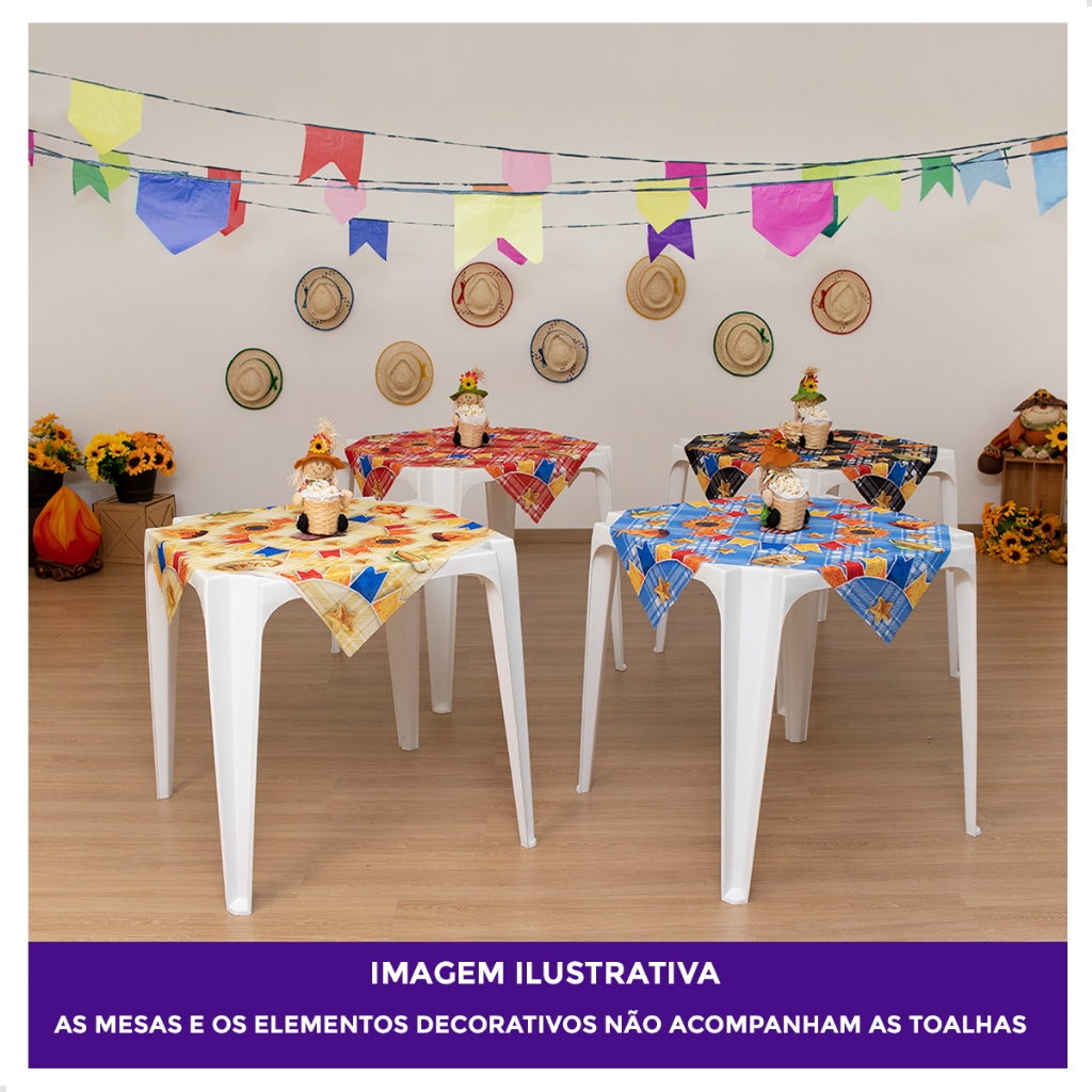 Toalhas de Mesa Festa Junina em Tecido 75x75cm 4 unidades Pipoca