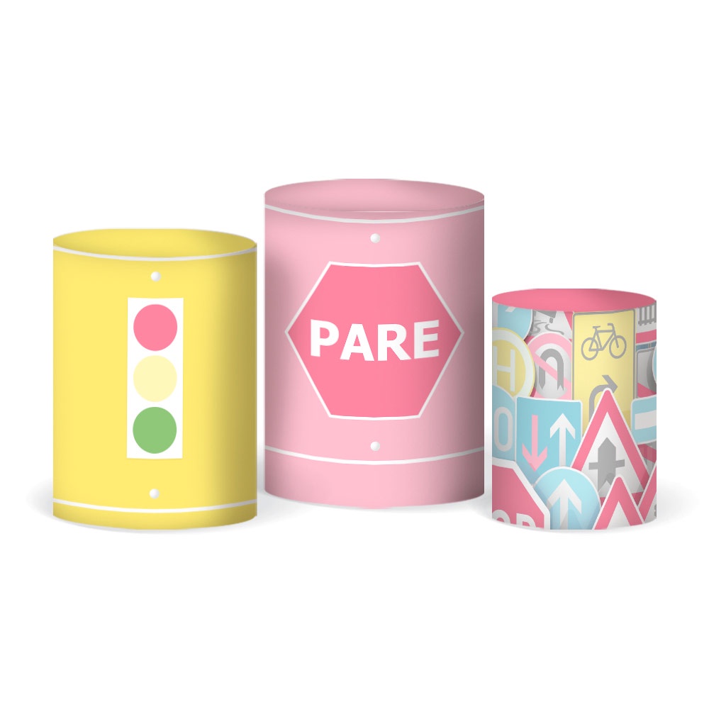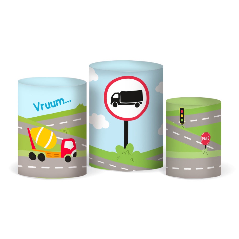 Trio Capa Cilindro Festa Trânsito Carros Veste Fácil Em Tecido com Elástico para Decoração
