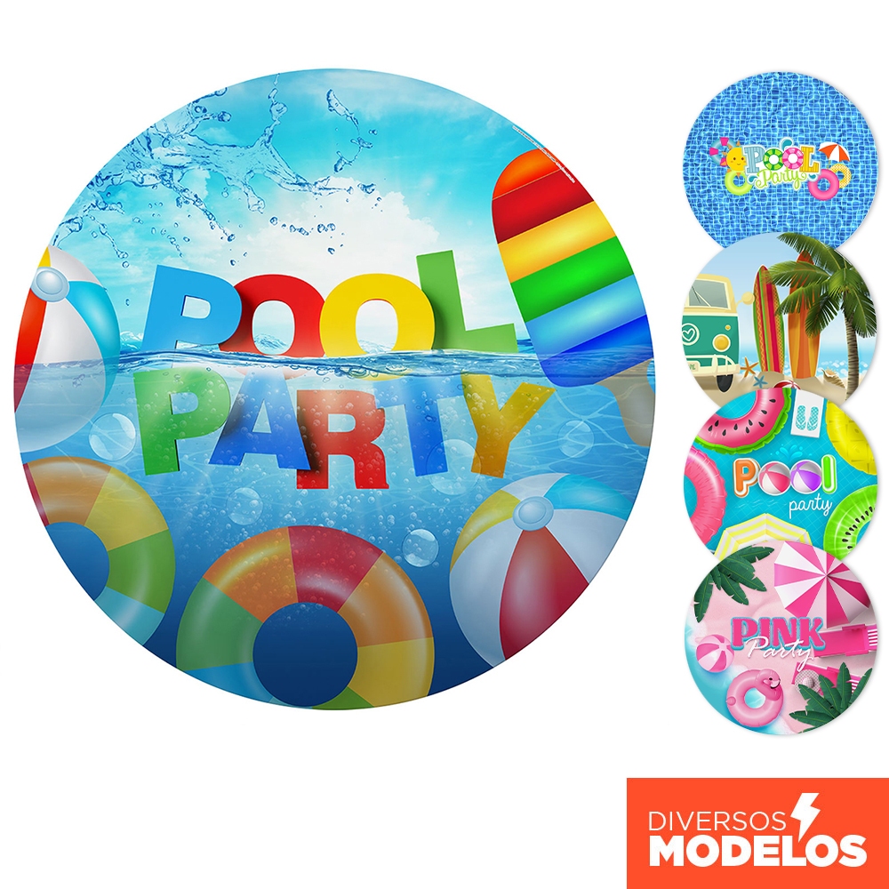 Capa Painel Redondo Pool Party Piscina em tecido 1,50m com Elástico para Festas