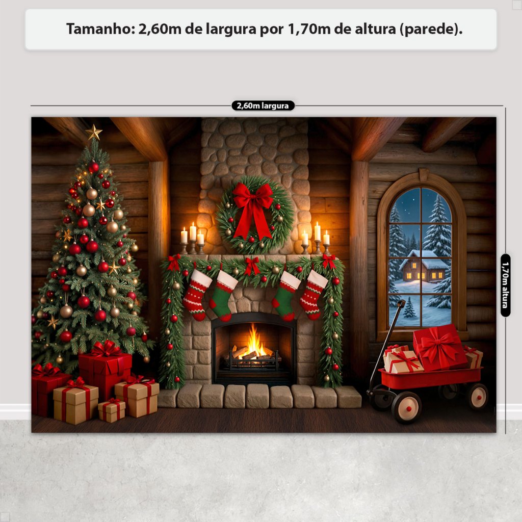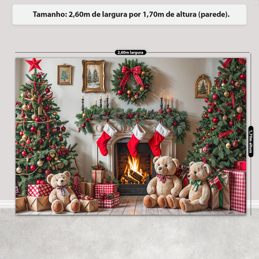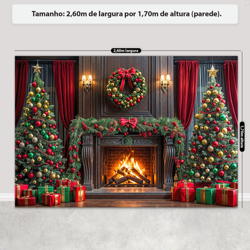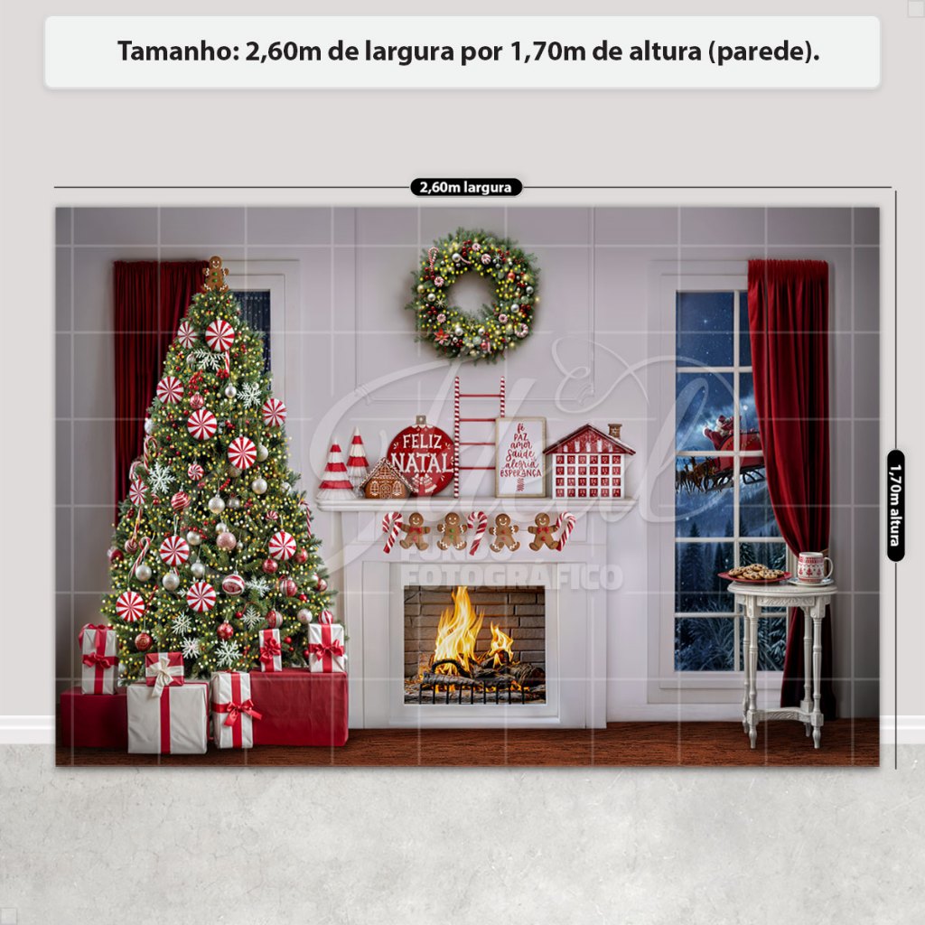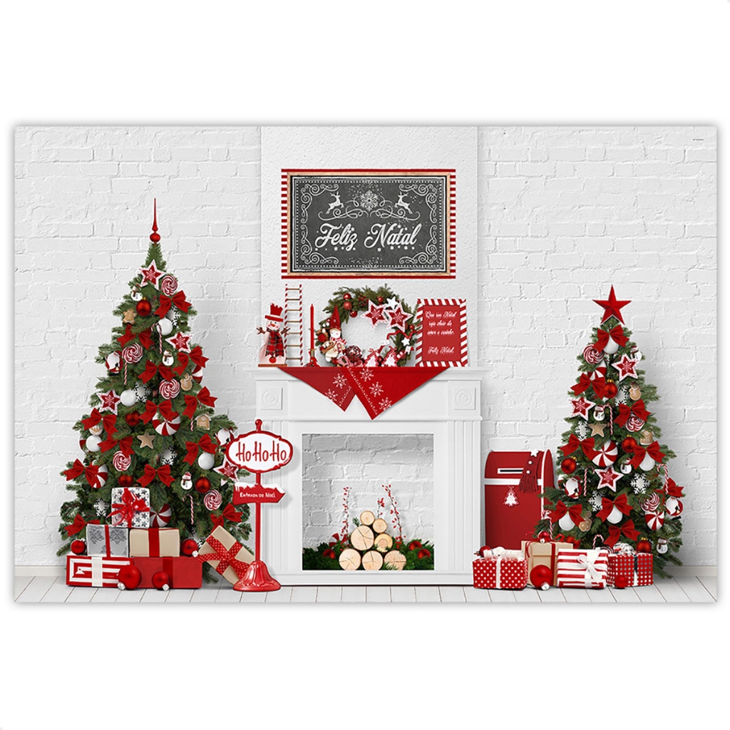 Painel de Natal Decoração Fundo Fotográfico Cenário Natalino Para Fotos Em Tecido 2,6x1,7m Sublimado