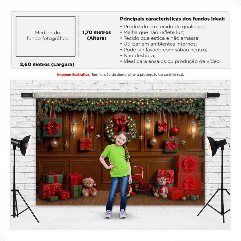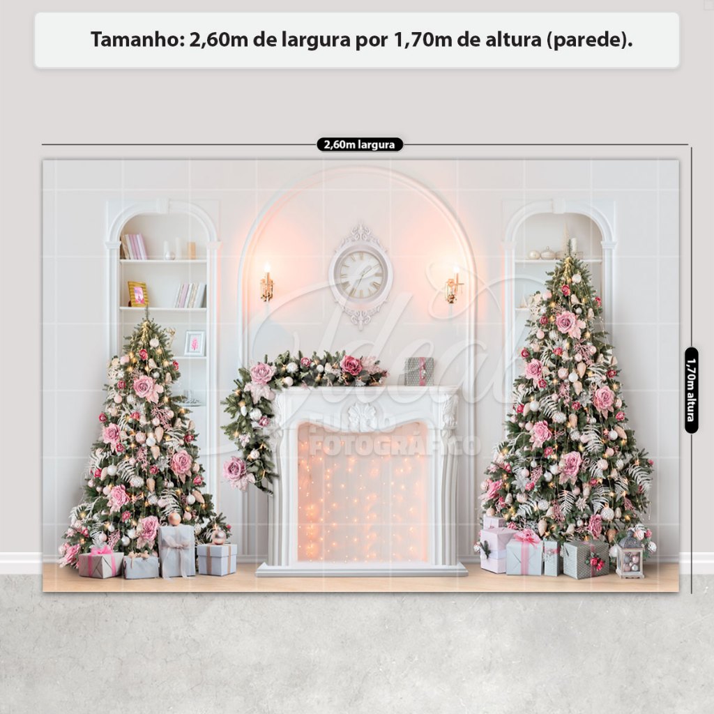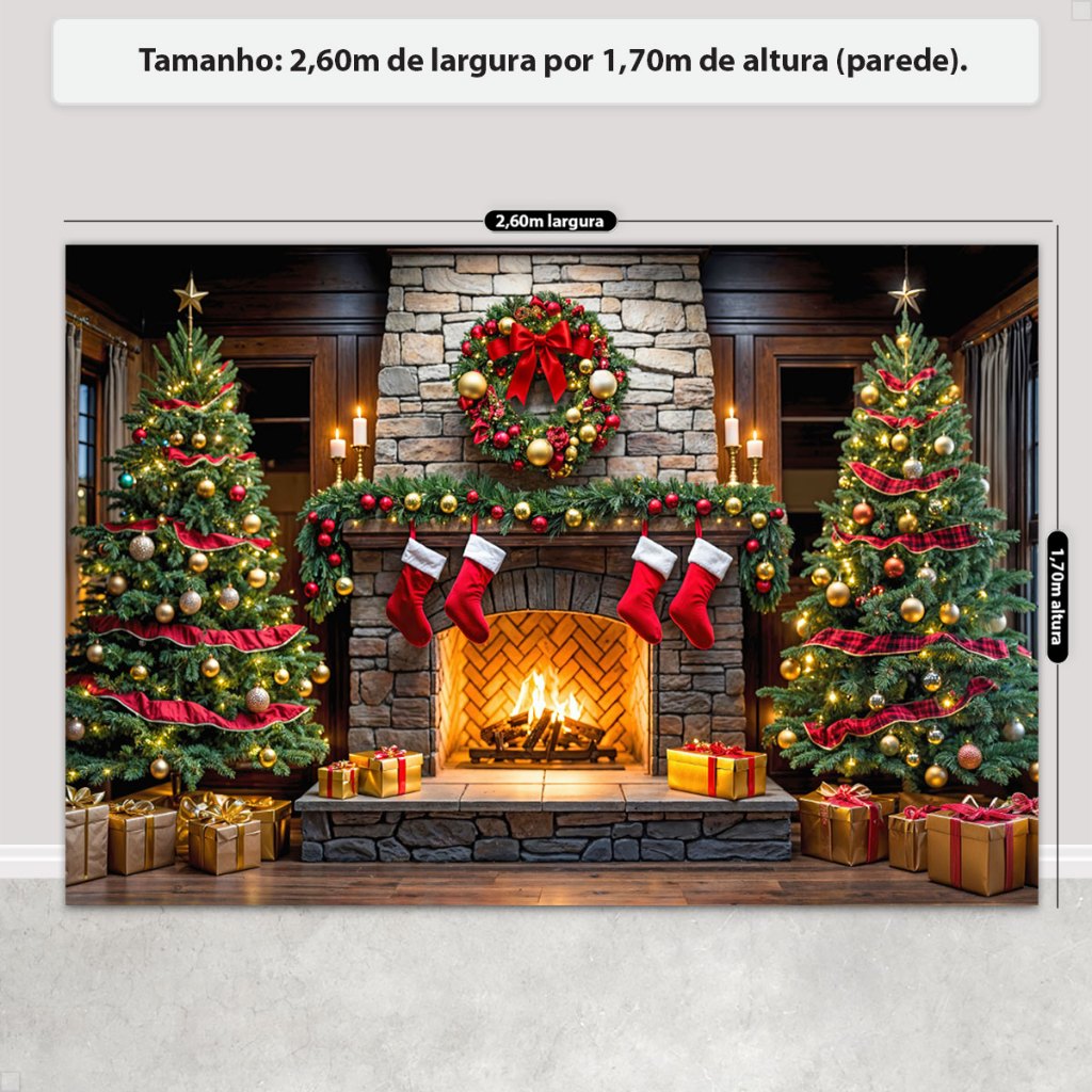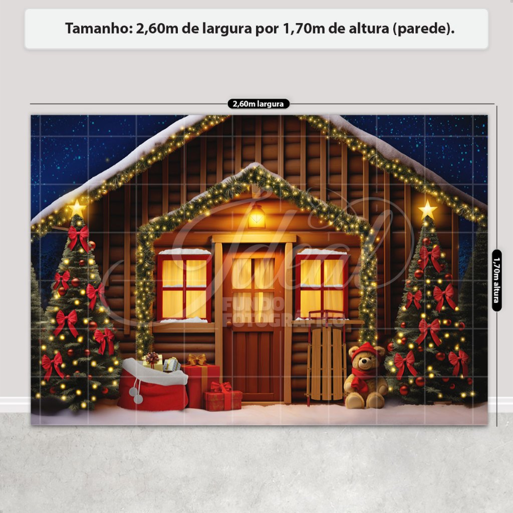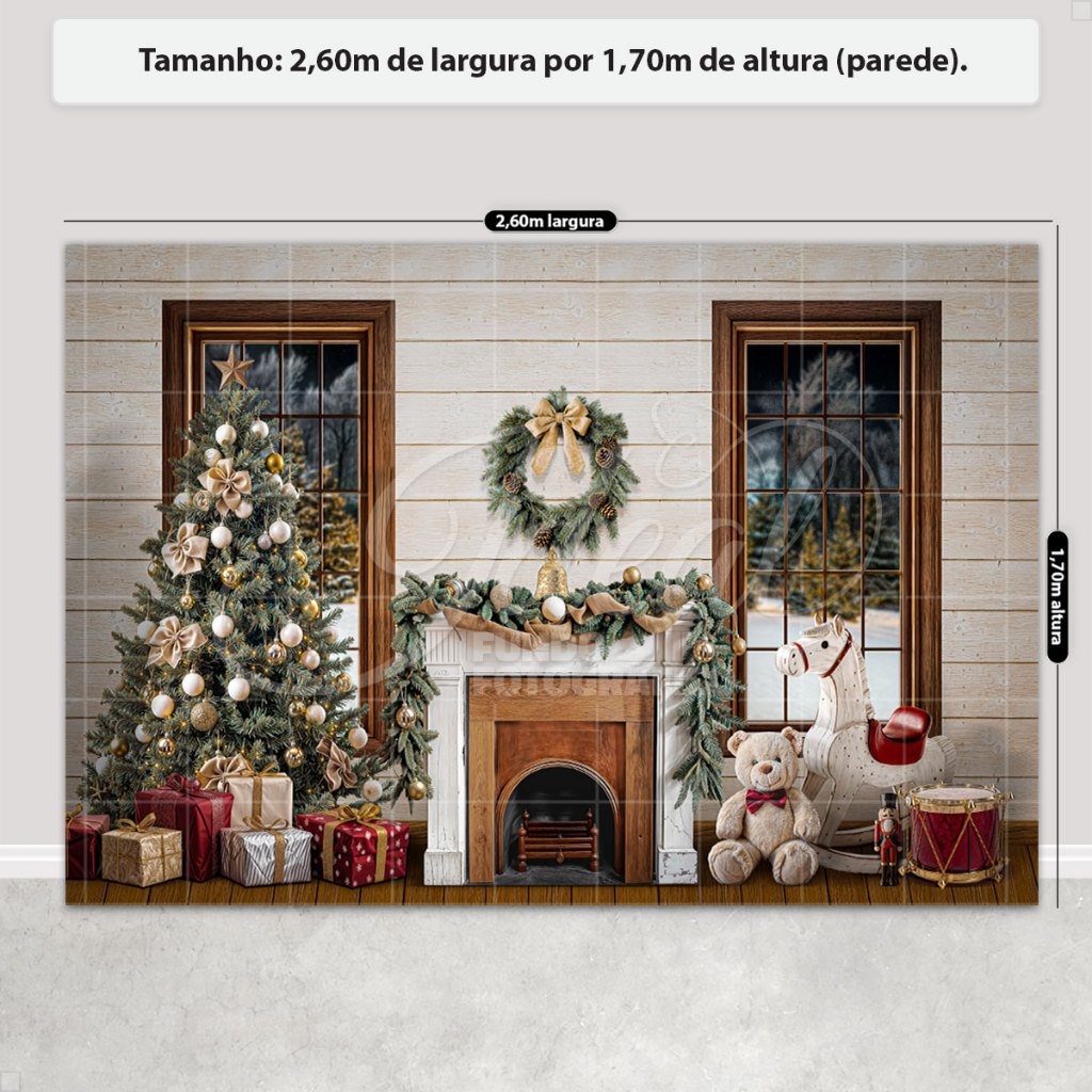 Painel de Natal Decoração Fundo Fotográfico Cenário Natalino Para Fotos Em Tecido 2,6x1,7m Sublimado