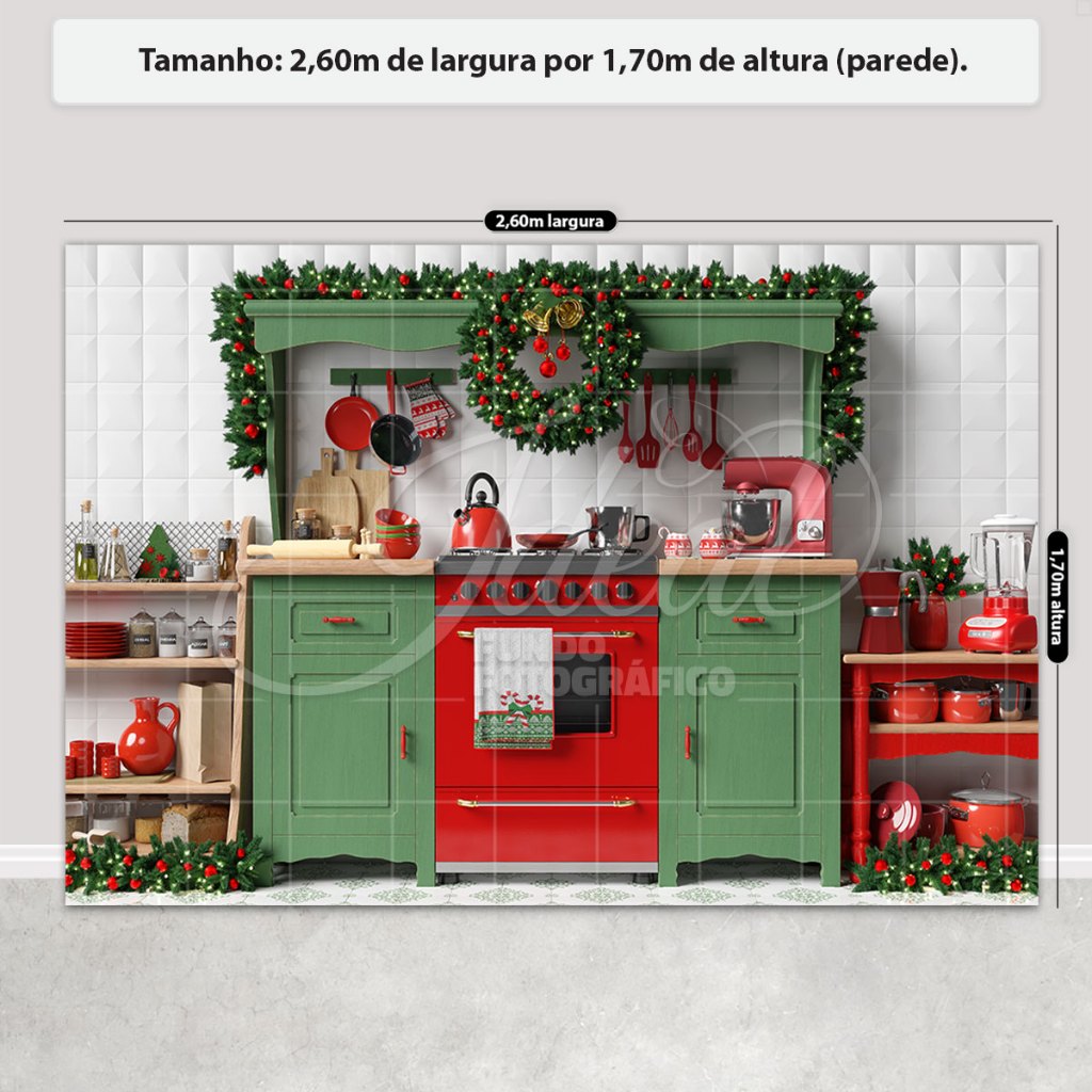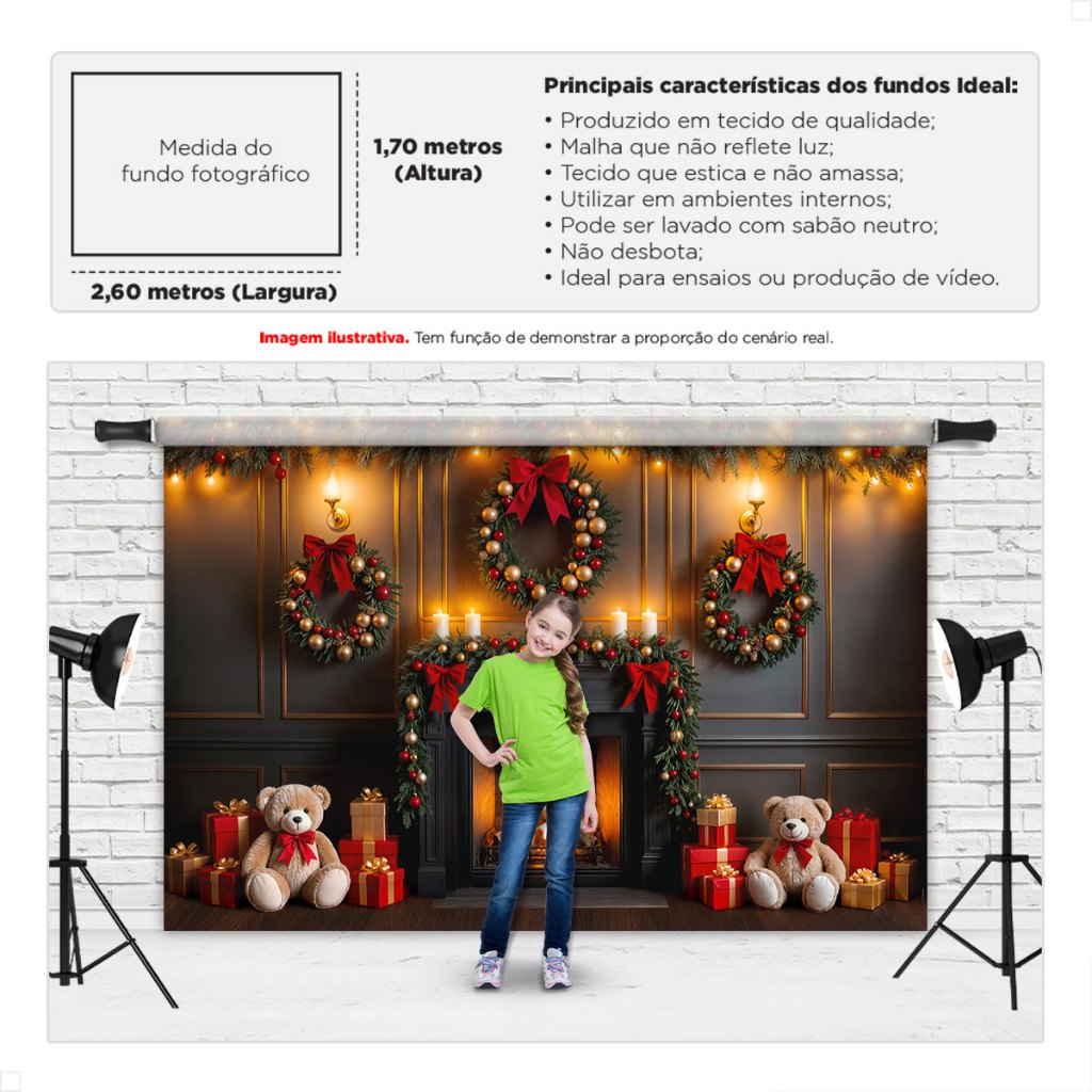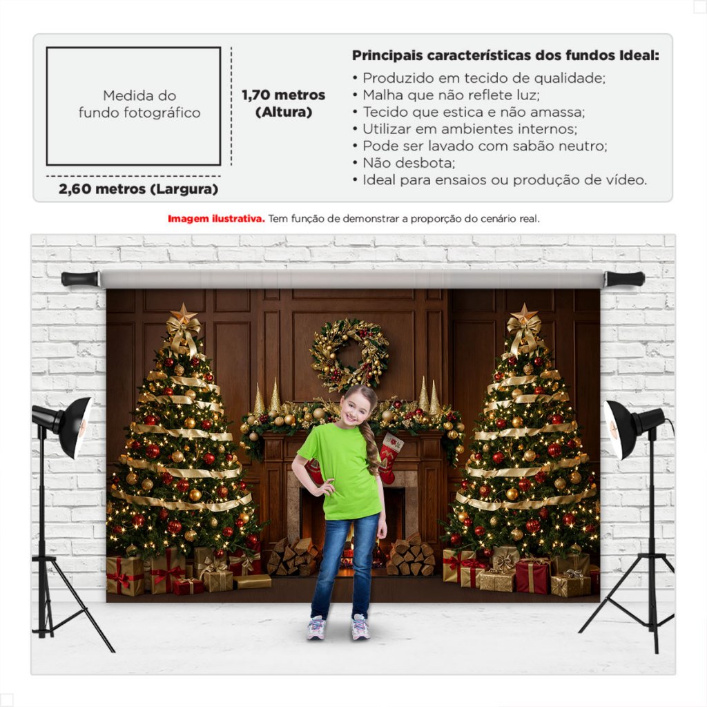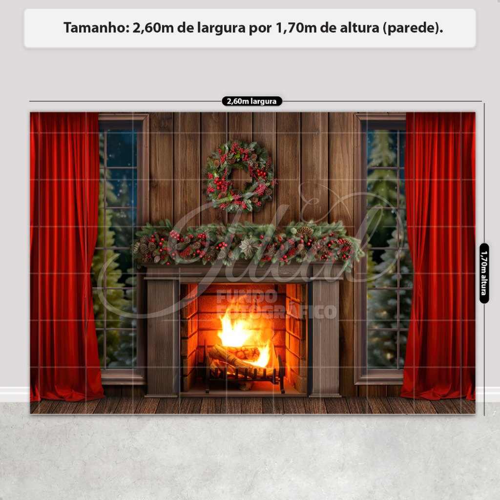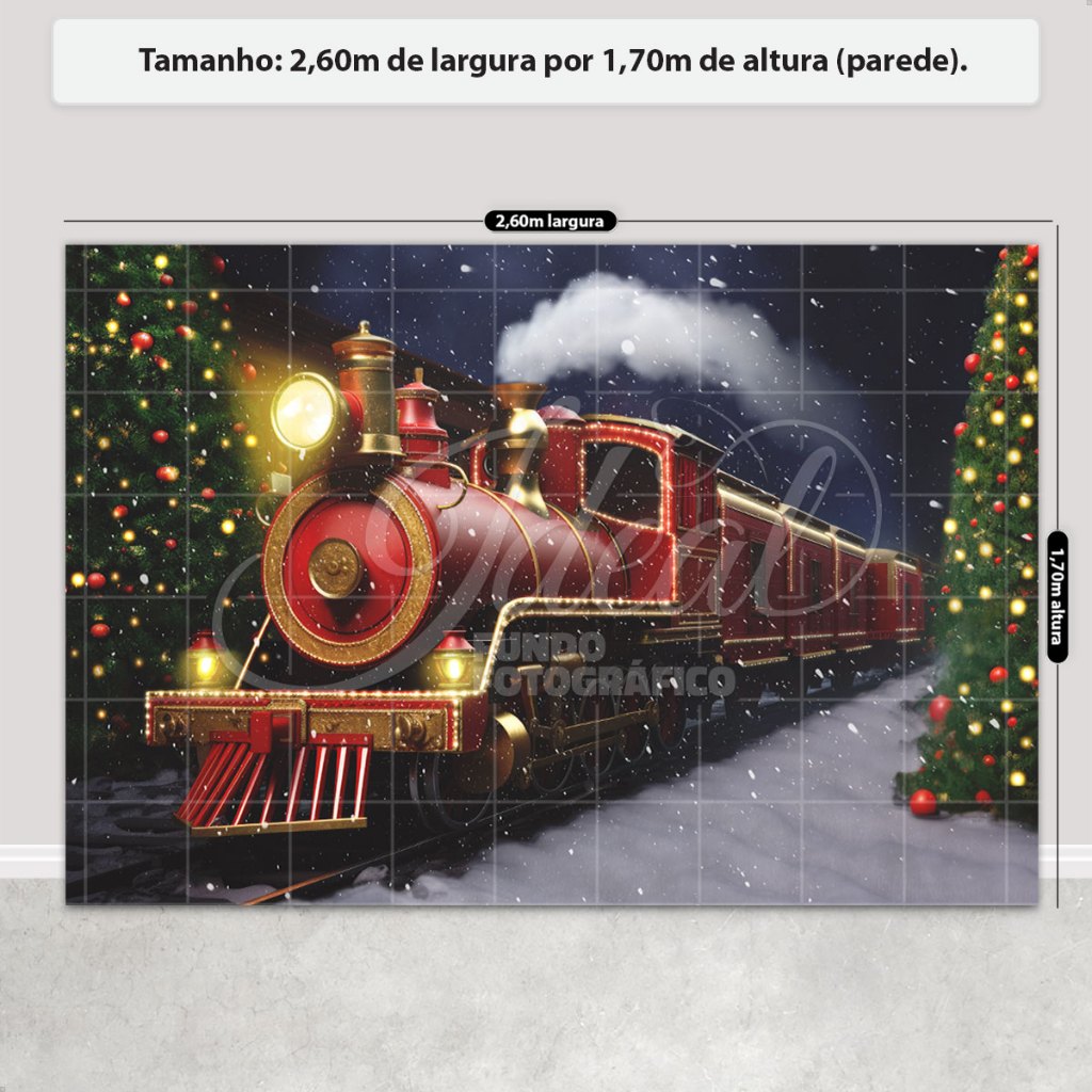 Painel de Natal Decoração Fundo Fotográfico Cenário Natalino Para Fotos Em Tecido 2,6x1,7m Sublimado