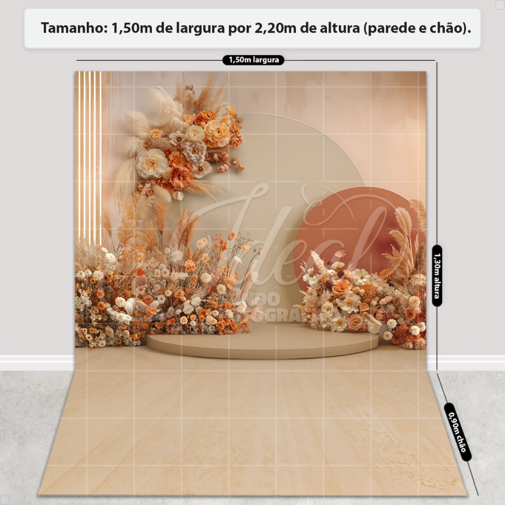 Fundo Fotográfico Floral Boho Cenário Dia das Mães Painel Em Tecido Sublimado para Foto