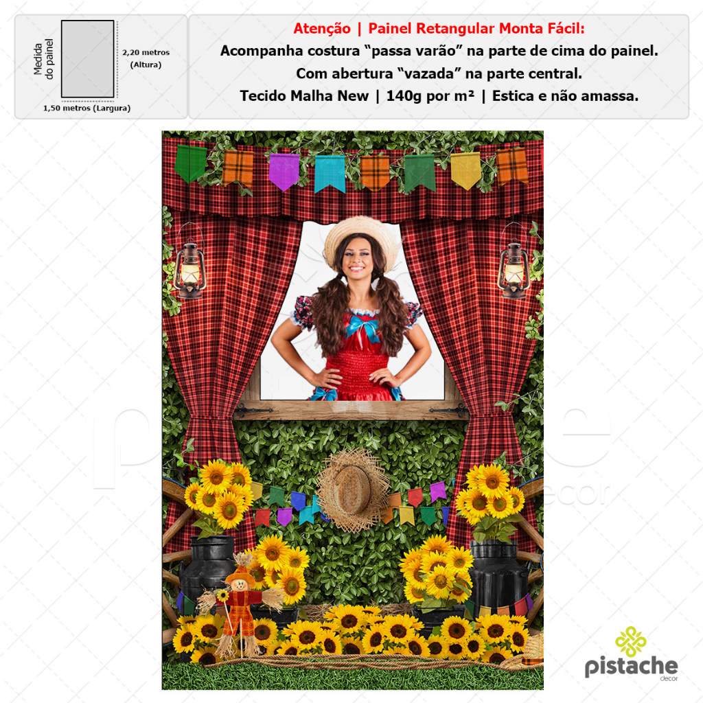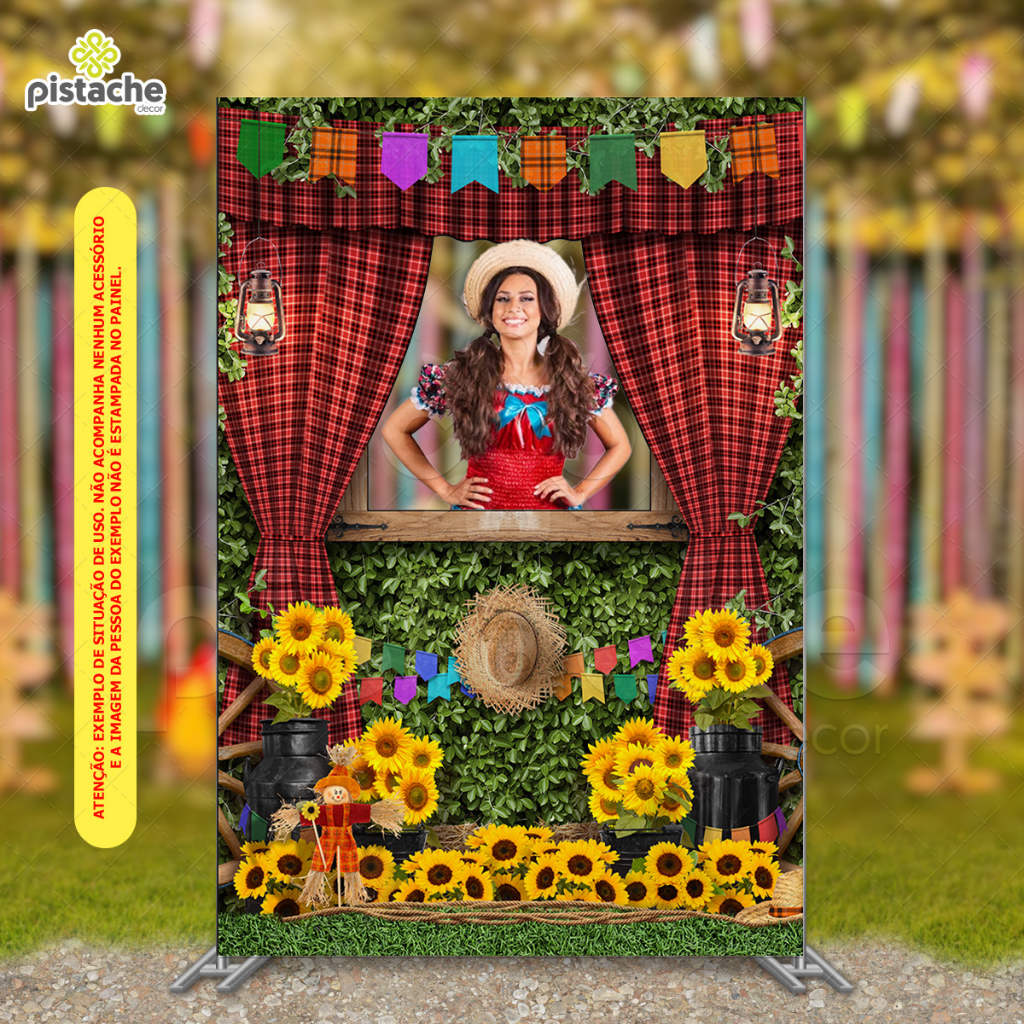 Painel Retangular Lateral Festa Junina Arraiá Interativo Vazado Sublimado Tecido 1,50x2,20