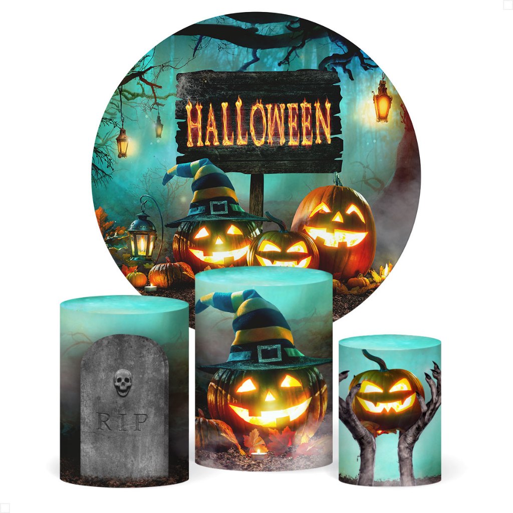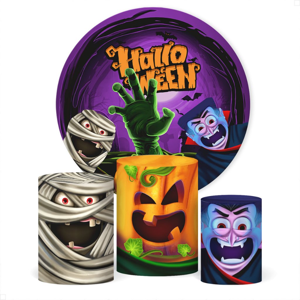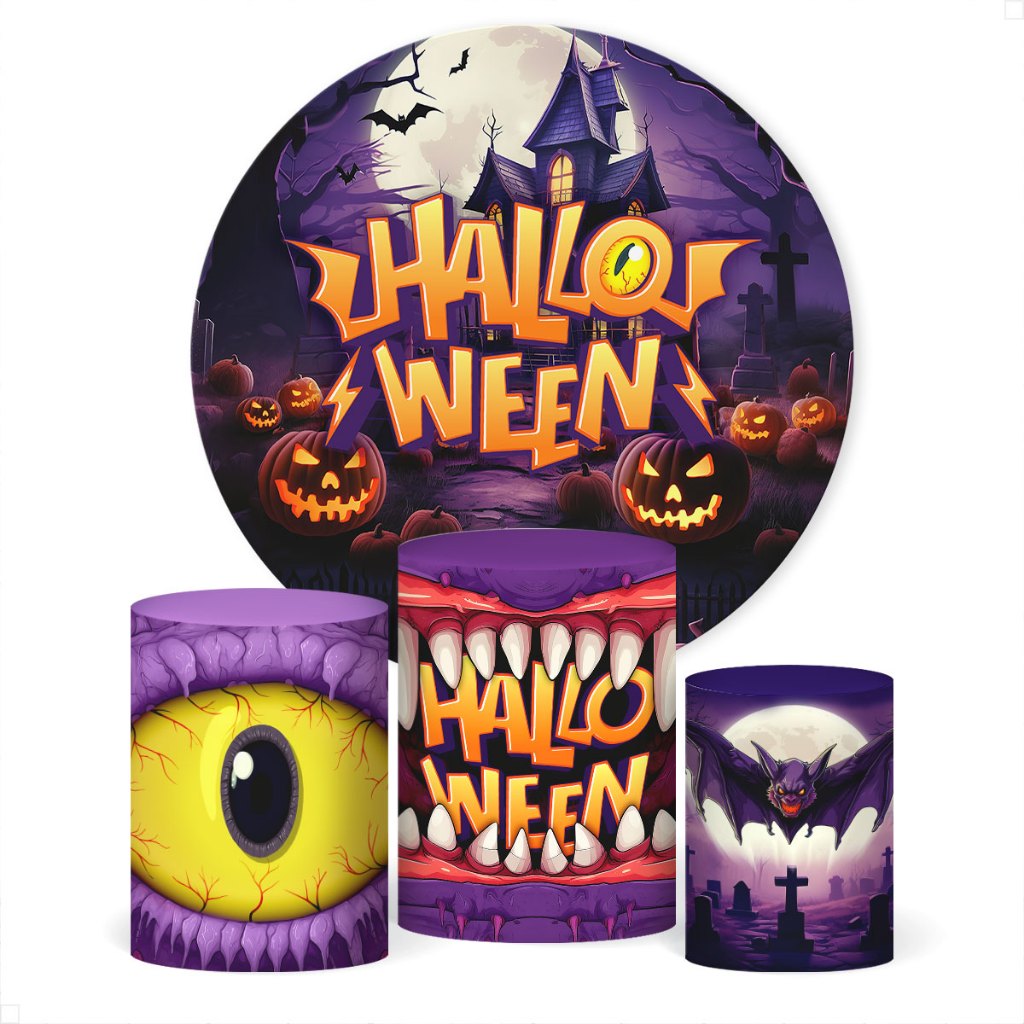 Painel de Festa Redondo + Capa de Cilindro Decoração Halloween Sublimado Em Tecido Veste Fácil