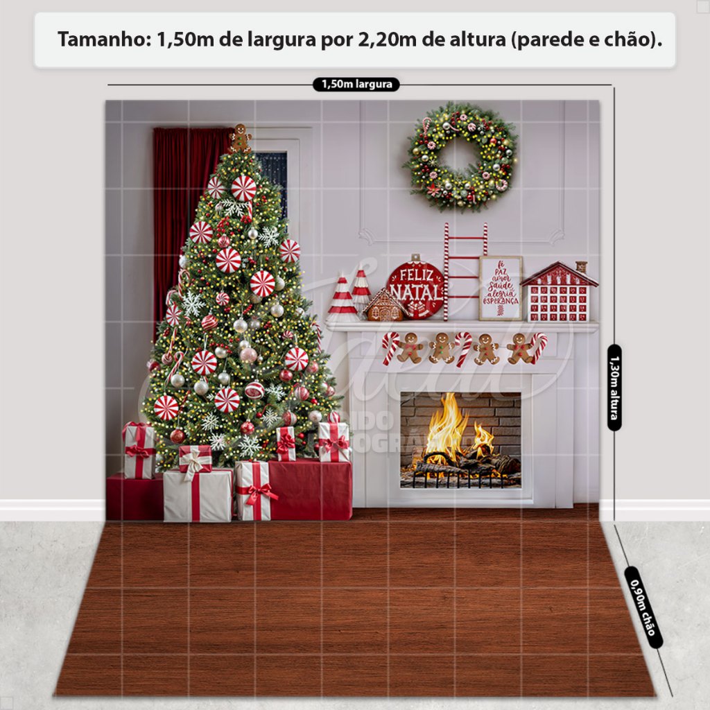 Fundo Fotográfico Natal Cenário Lareira Doces Painel Em Tecido Sublimado - FNT-812
