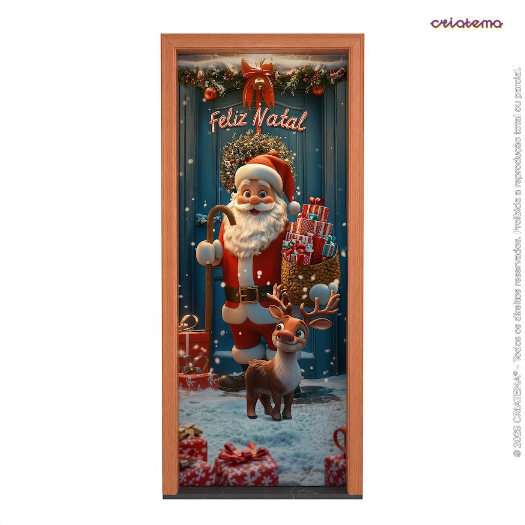 Capa de Porta Natal Papai Noel Em Tecido Veste Porta Decorativo Sublimado 0,80x2,10m - PTA-24