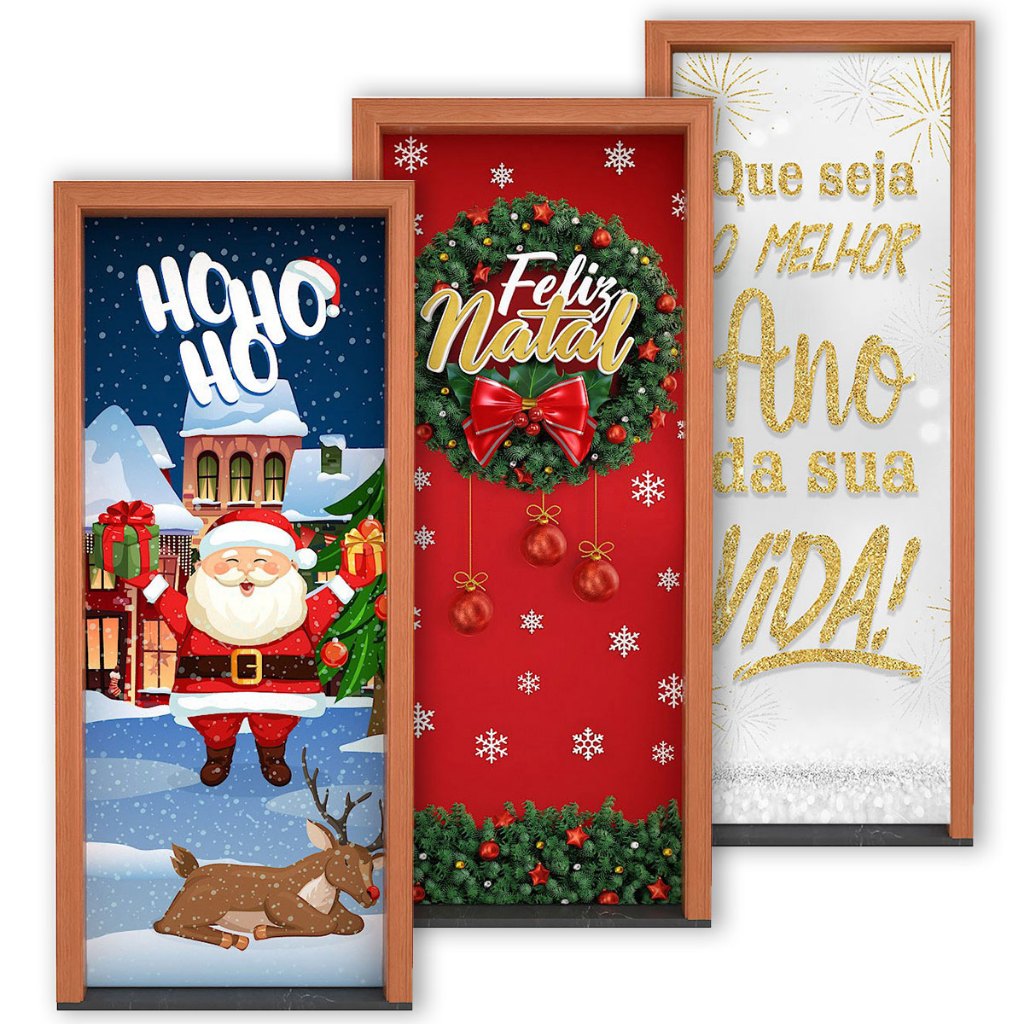 Kit Capas de Porta Natal e Ano Novo em Tecido Veste Fácil 0,80x2,10m - 3 Unidades