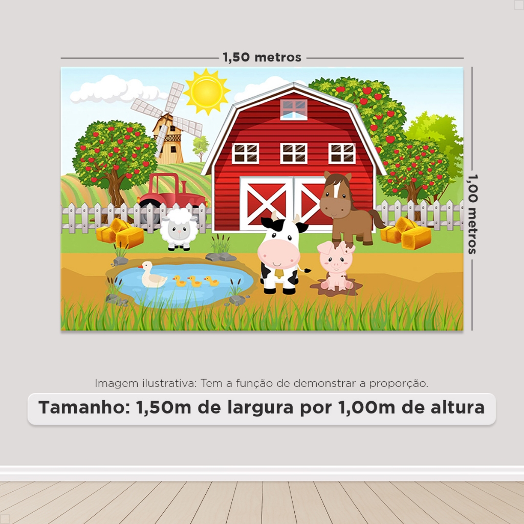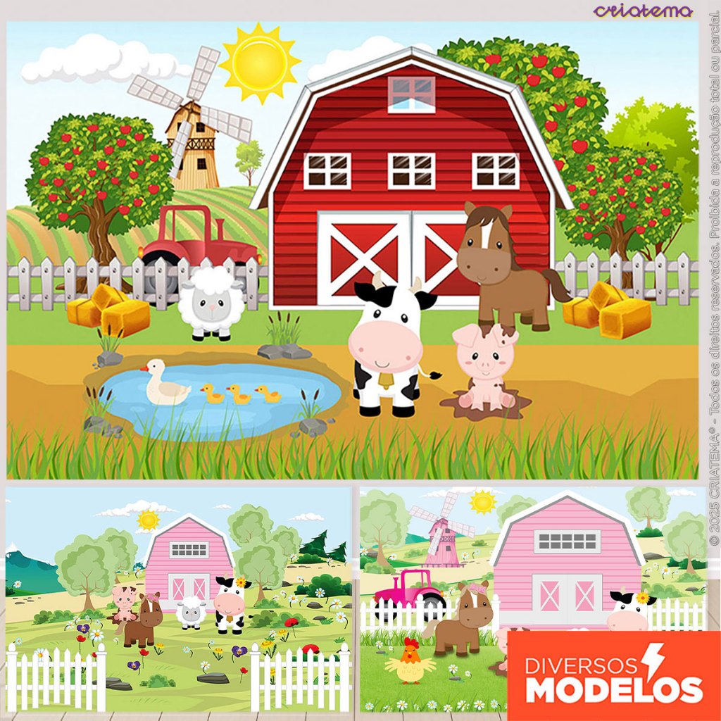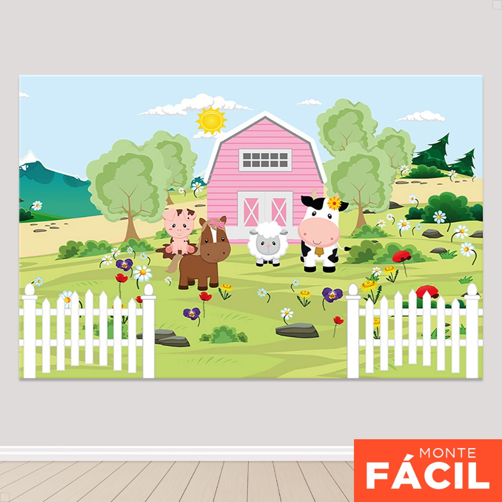 Painel De Festa Fazendinha Retangular Horizontal Sublimado 3D Em Tecido Monte fácil