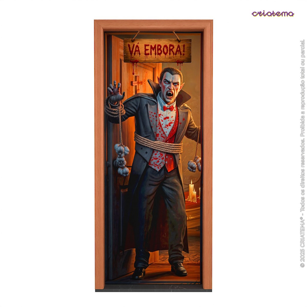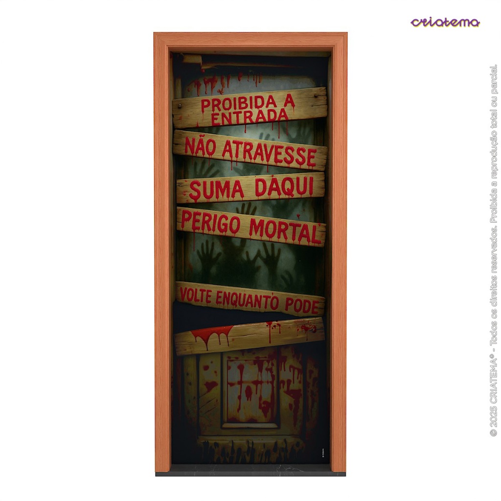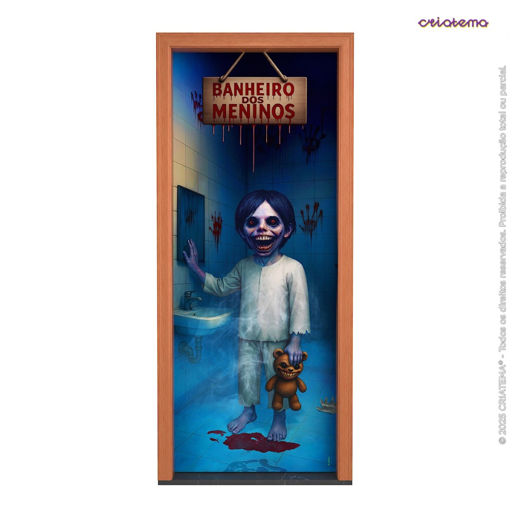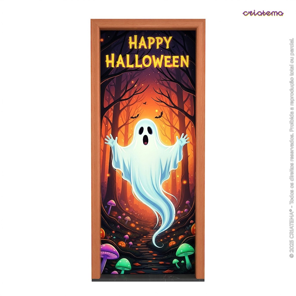Capa De Porta Decoração Halloween Sublimado Em Tecido Com Elástico 0,80x2,10m - Diversos Modelos
