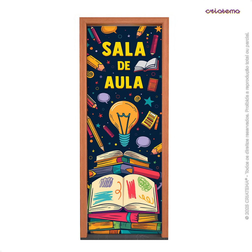 Capa De Porta Sala De Aula Escolar Decoração Em Tecido Com Elástico Sublimado 0,80x2,10m