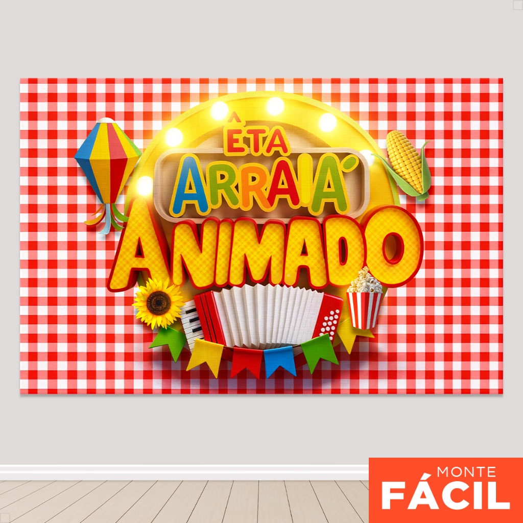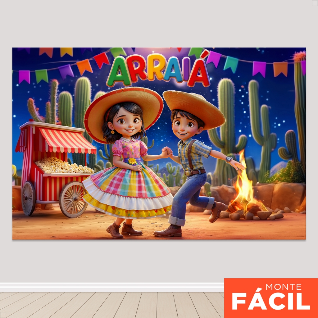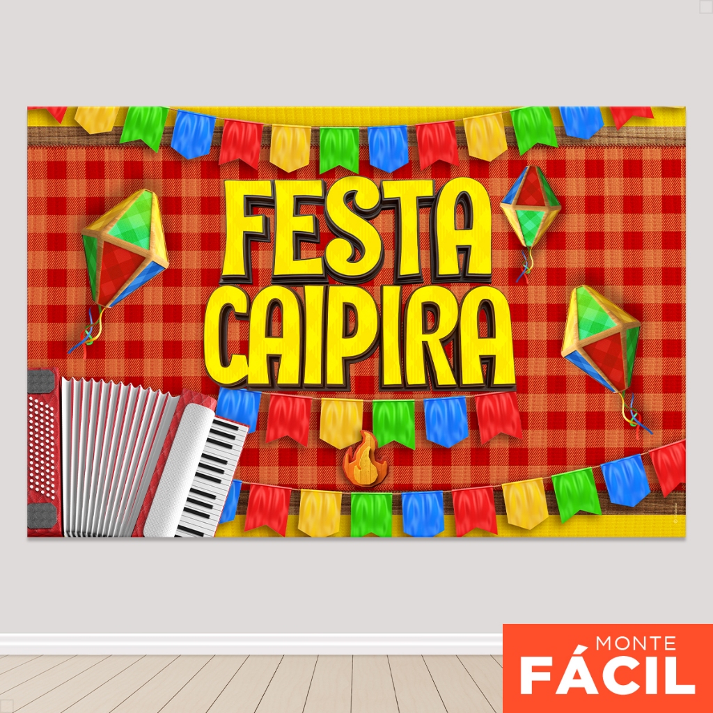 Painel De Festa Retangular Festa Junina Horizontal Sublimado 3D Em Tecido Monte fácil