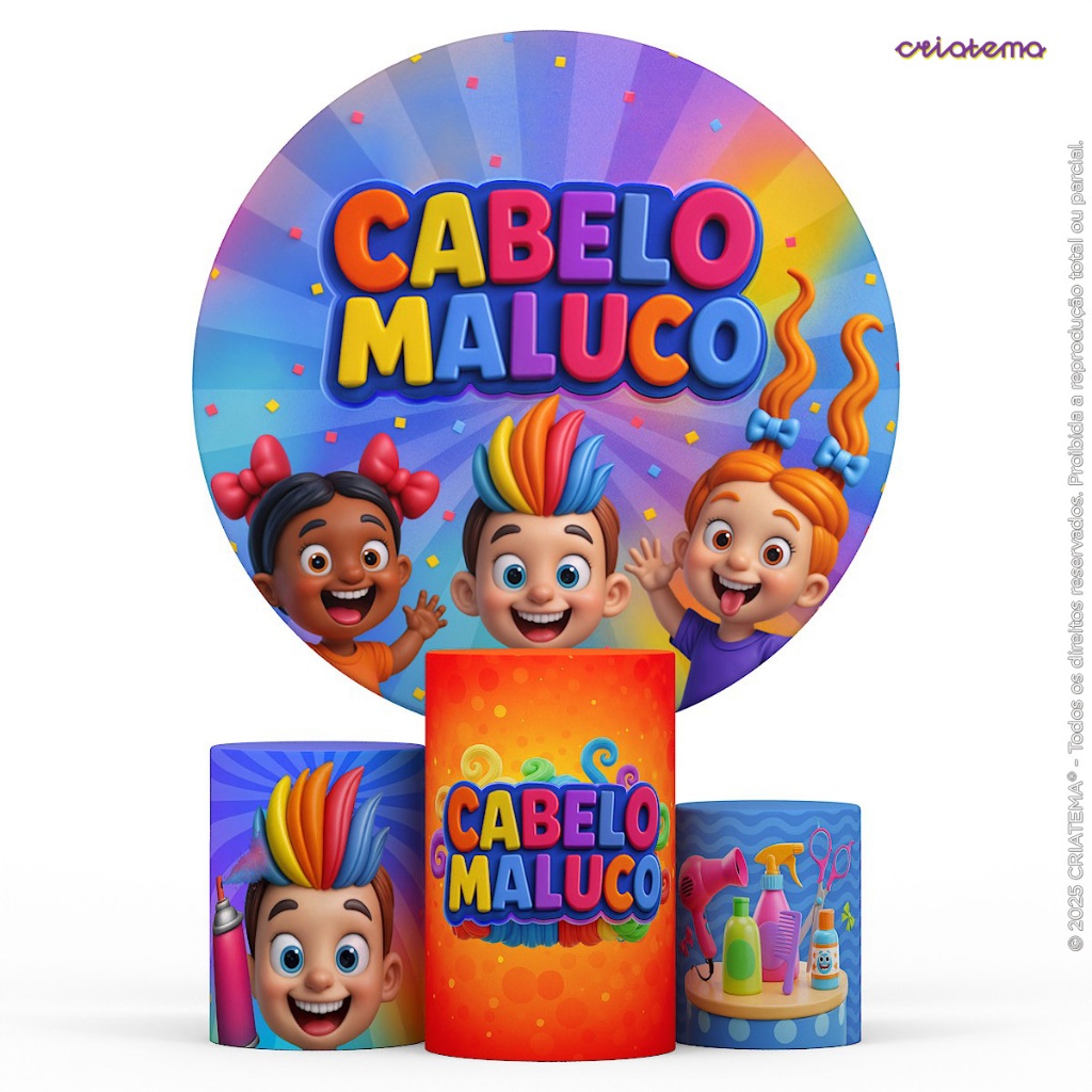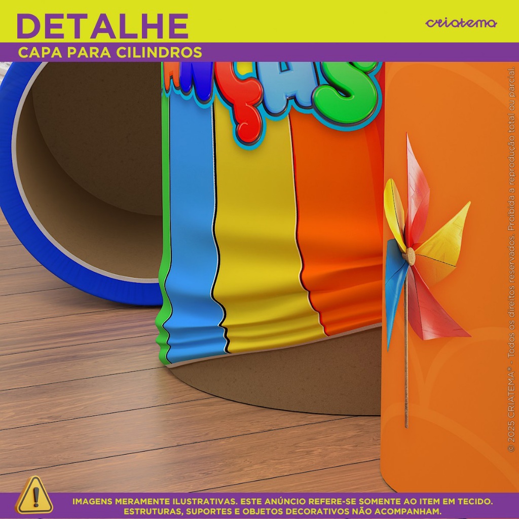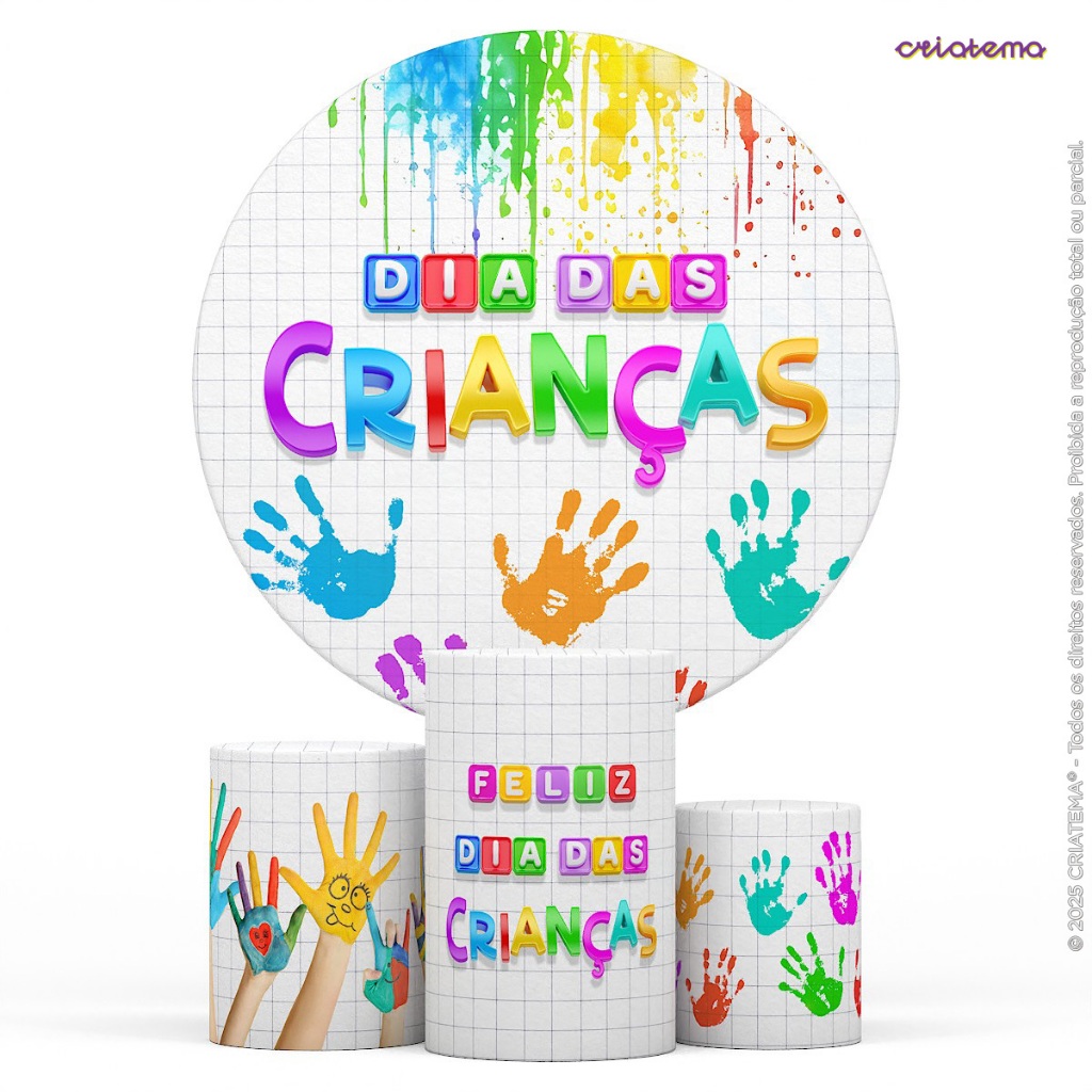 Trio Capas Cilindro E Painel Redondo Festa Decoração Dia das Crianças Sublimado Em Tecido