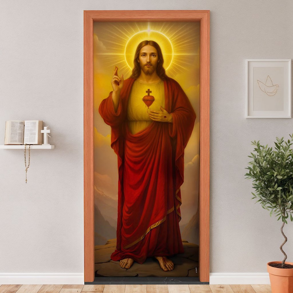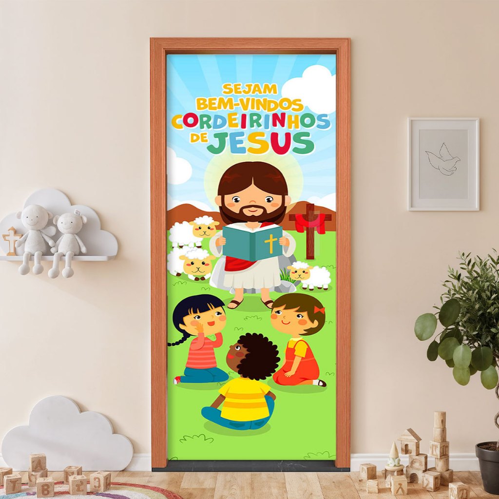 Capa de Porta Religiosa Decoração Cristã Sublimado Em Tecido 0,80x2,10 C/Elástico - Diversos Modelos
