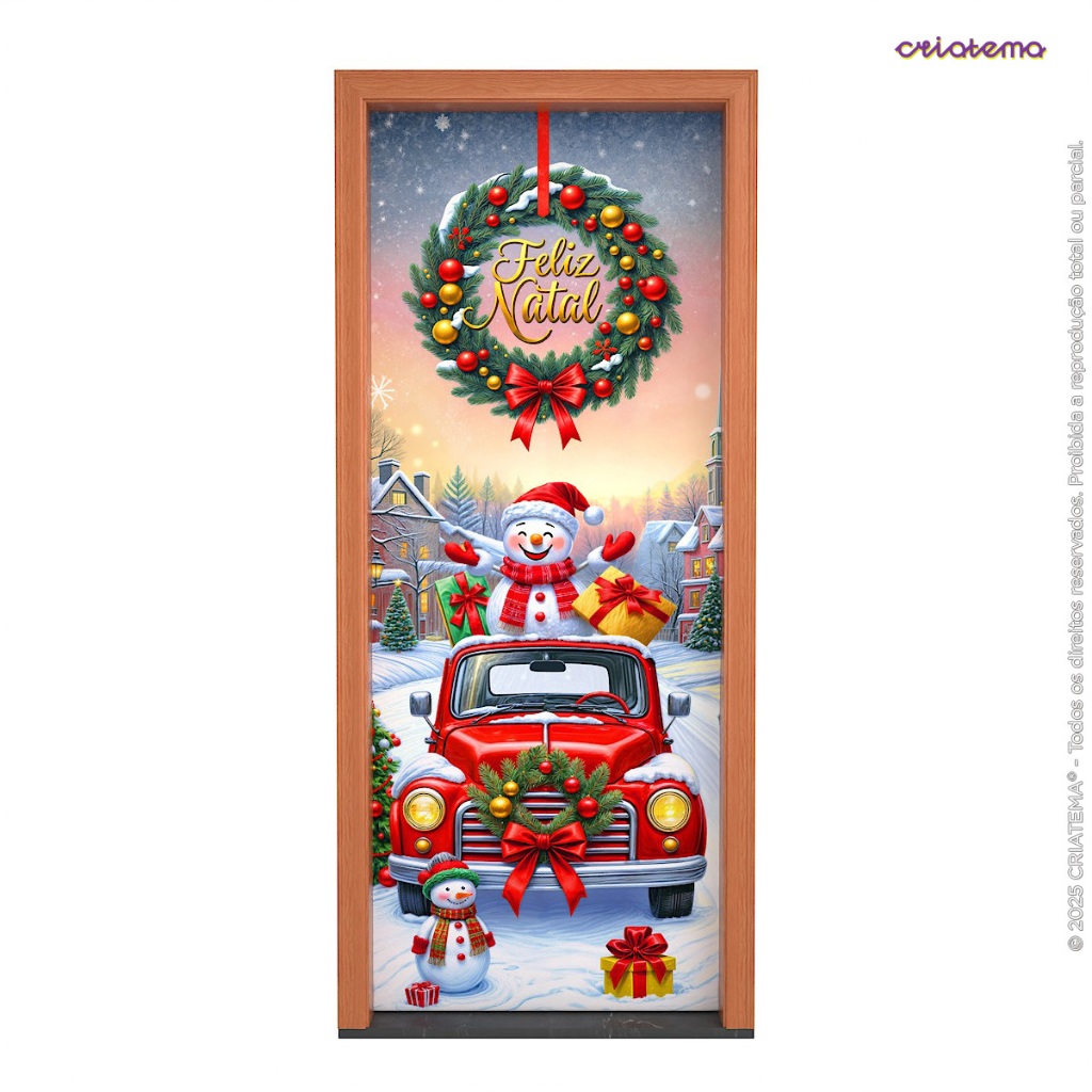 Capa de Porta Decoração Natal Boneco De Neve Em Tecido C/Elástico Sublimado 0,80x2,10m