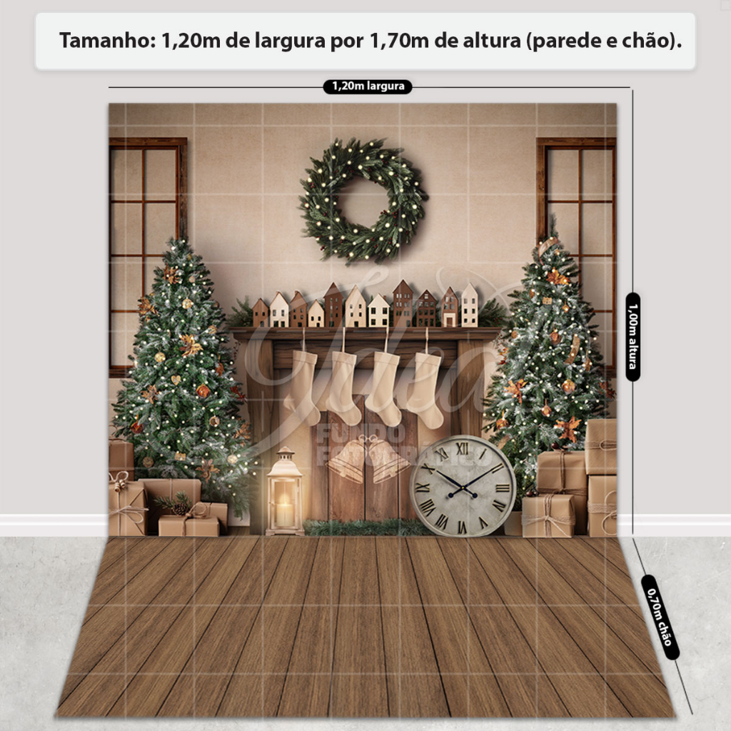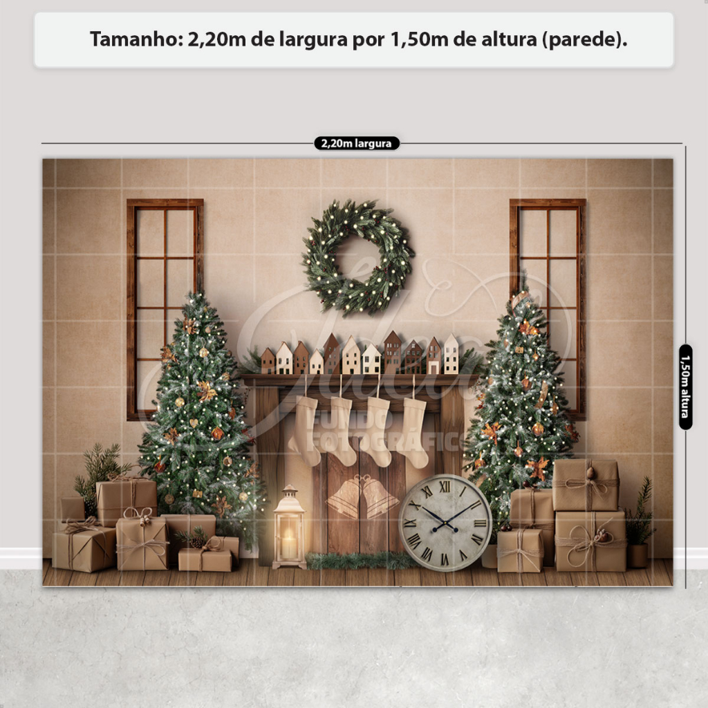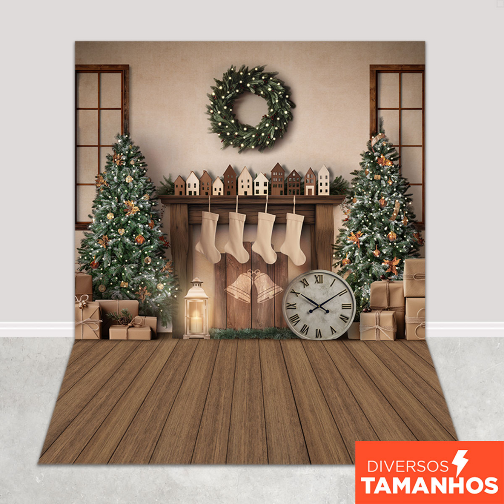 Fundo Fotográfico Natal Cenário Boho Lareira Painel para Fotos Em Tecido Sublimado - FNT-785