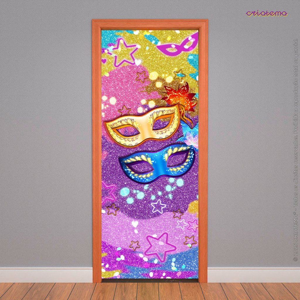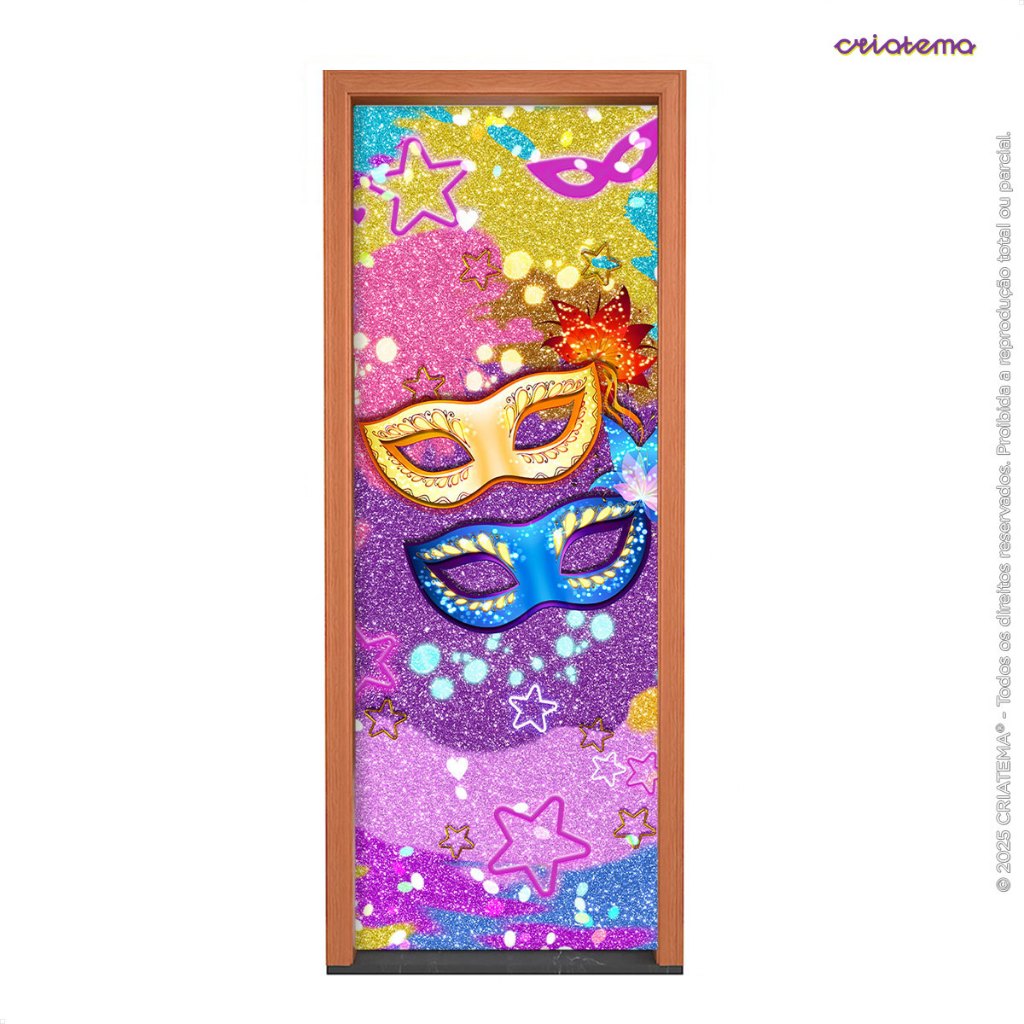 Capa Decorativa Para Porta Carnaval Em Tecido Sublimado Retangular Veste Porta C/ Elástico 0,80x2,1m