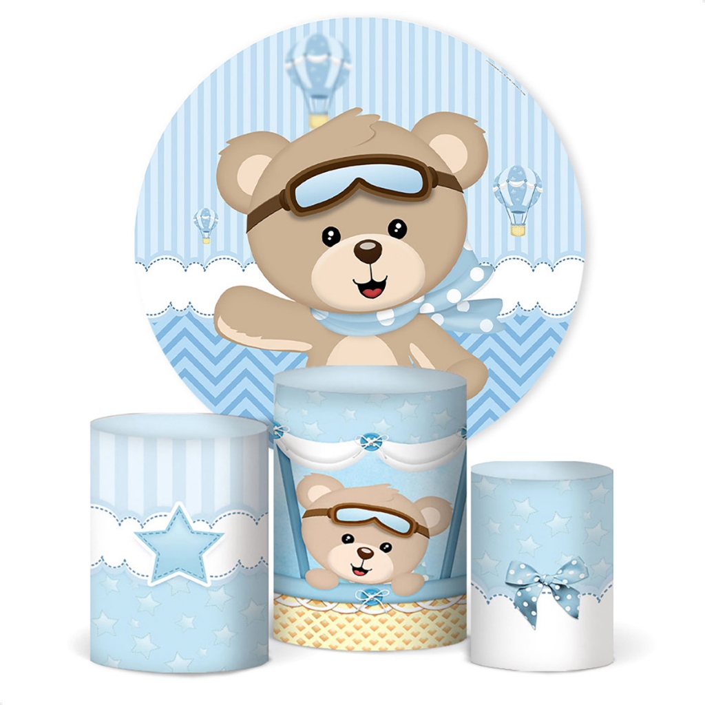 Trio Capa De Cilindro + Painel Redondo Urso Baloeiro Em Tecido Veste Fácil