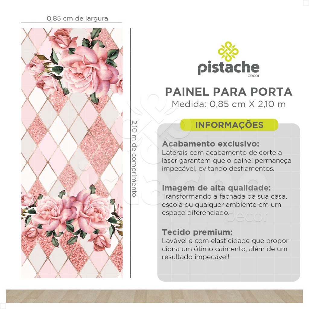 Capa Decorativa de Porta Floral Geométrico Rose Em Tecido Sublimado 0,85x2,10m - ANV-2951