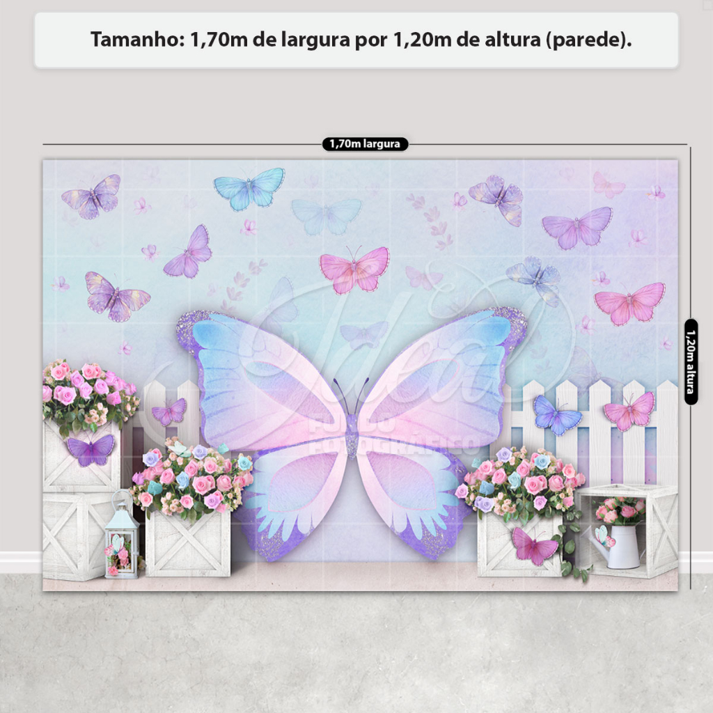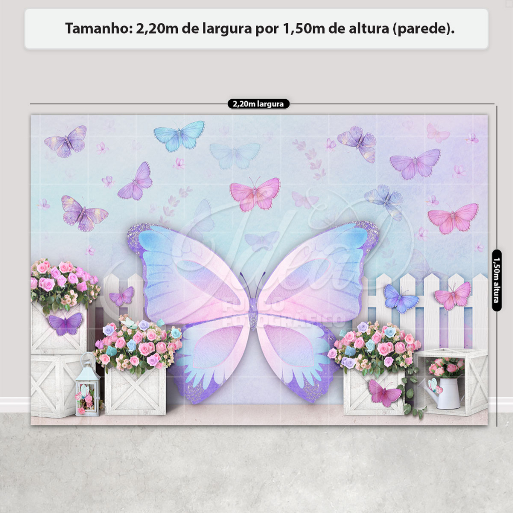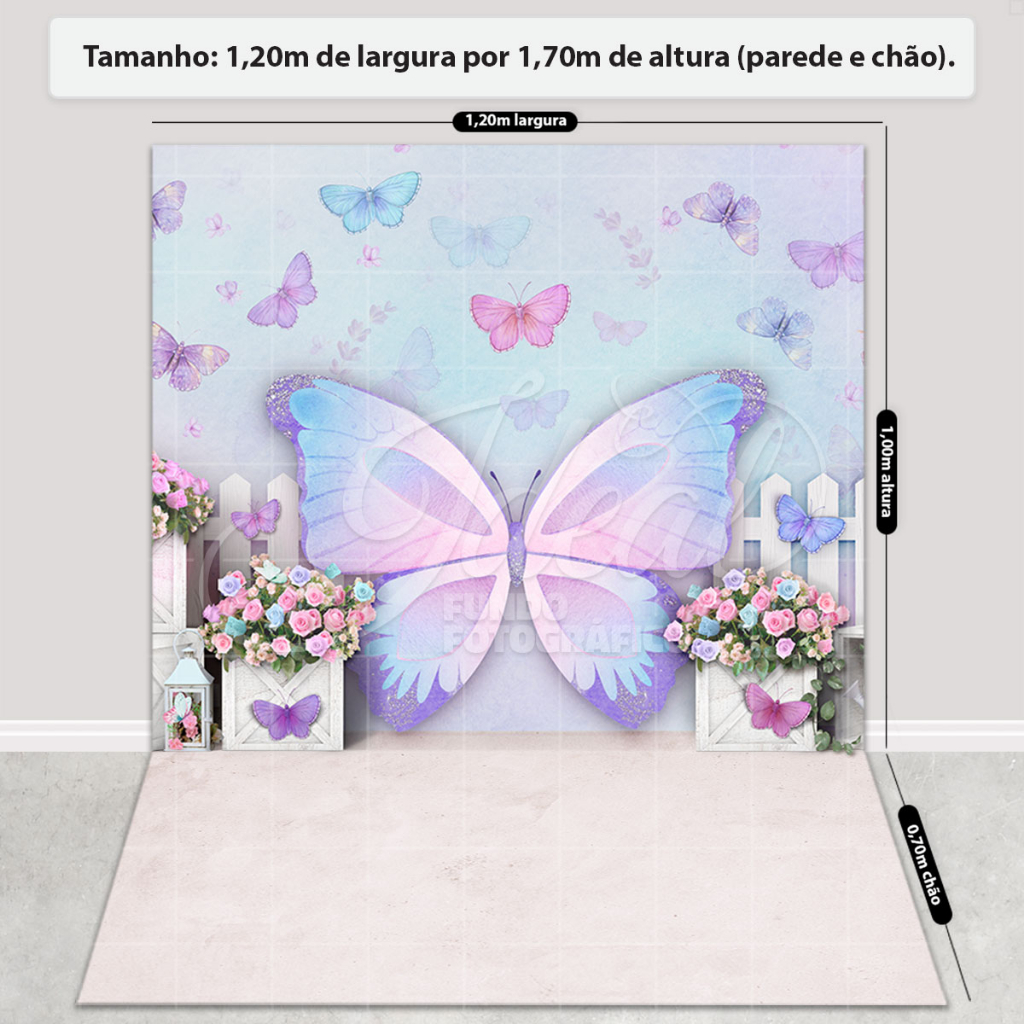 Fundo Fotográfico Infantil Borboleta Cenário Em Tecido Painel Sublimado para Foto