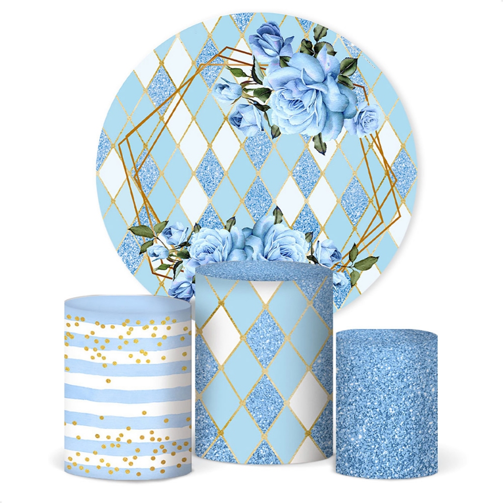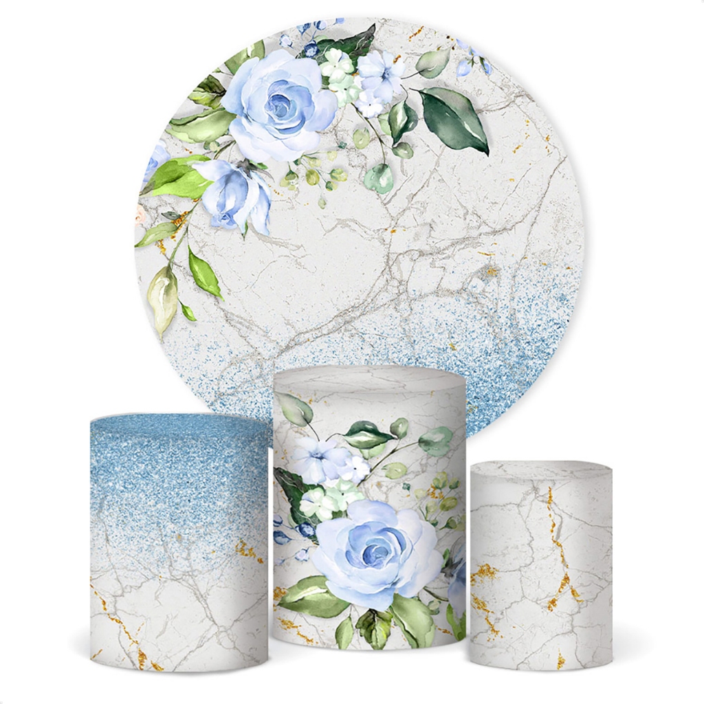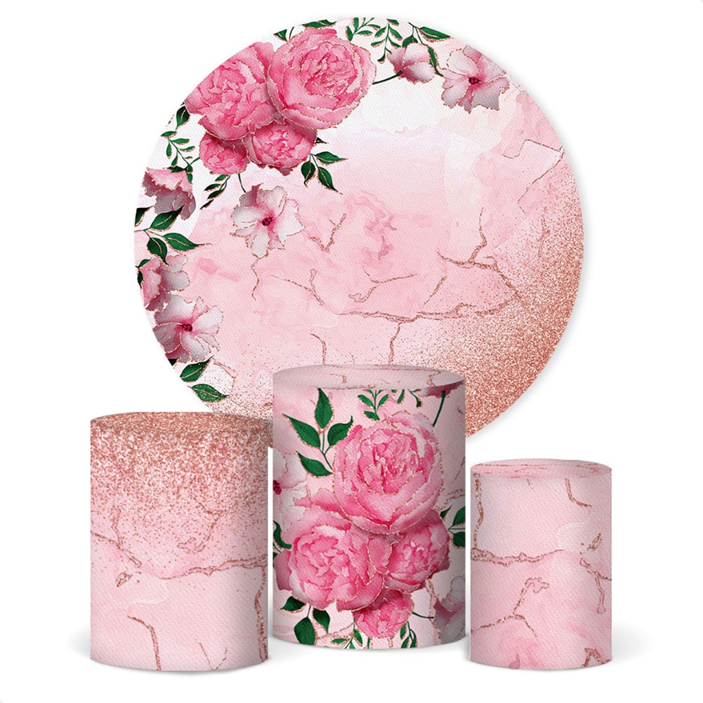 Trio Capa De Cilindro + Painel Redondo Flores Floral Em Tecido Veste Fácil
