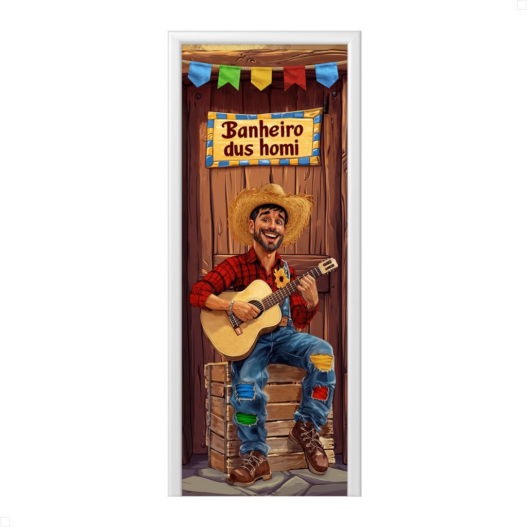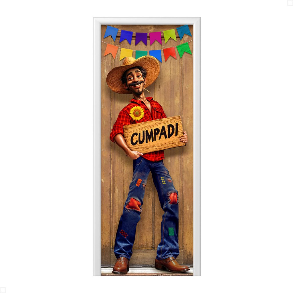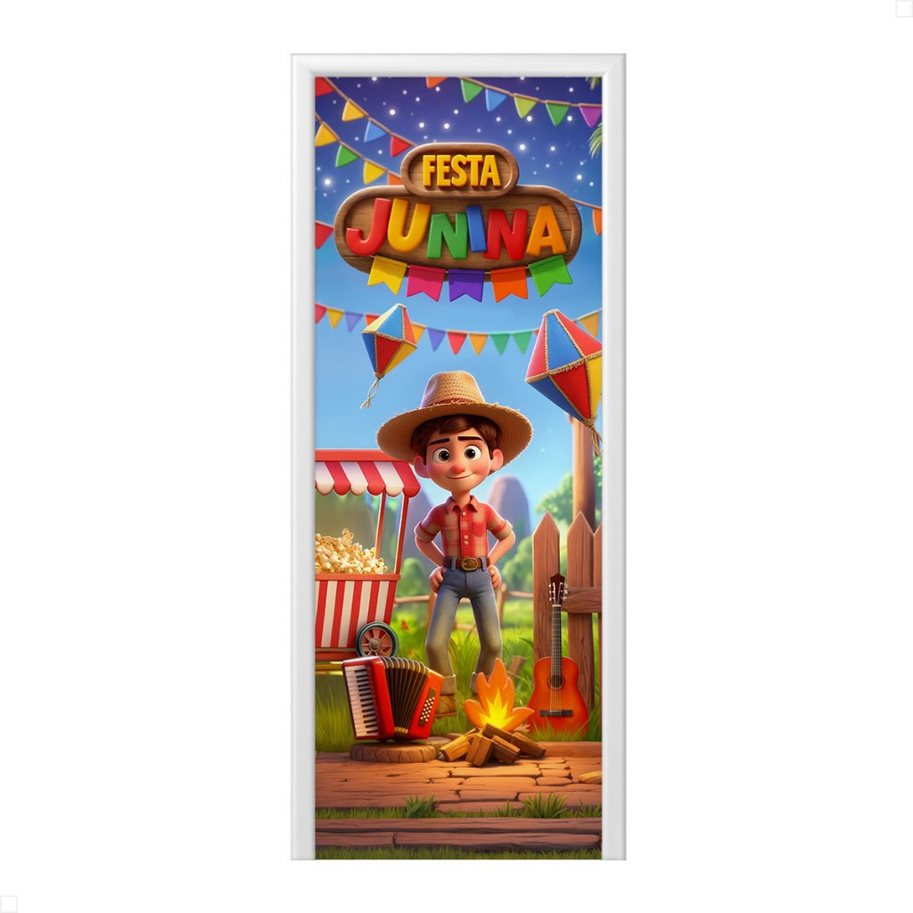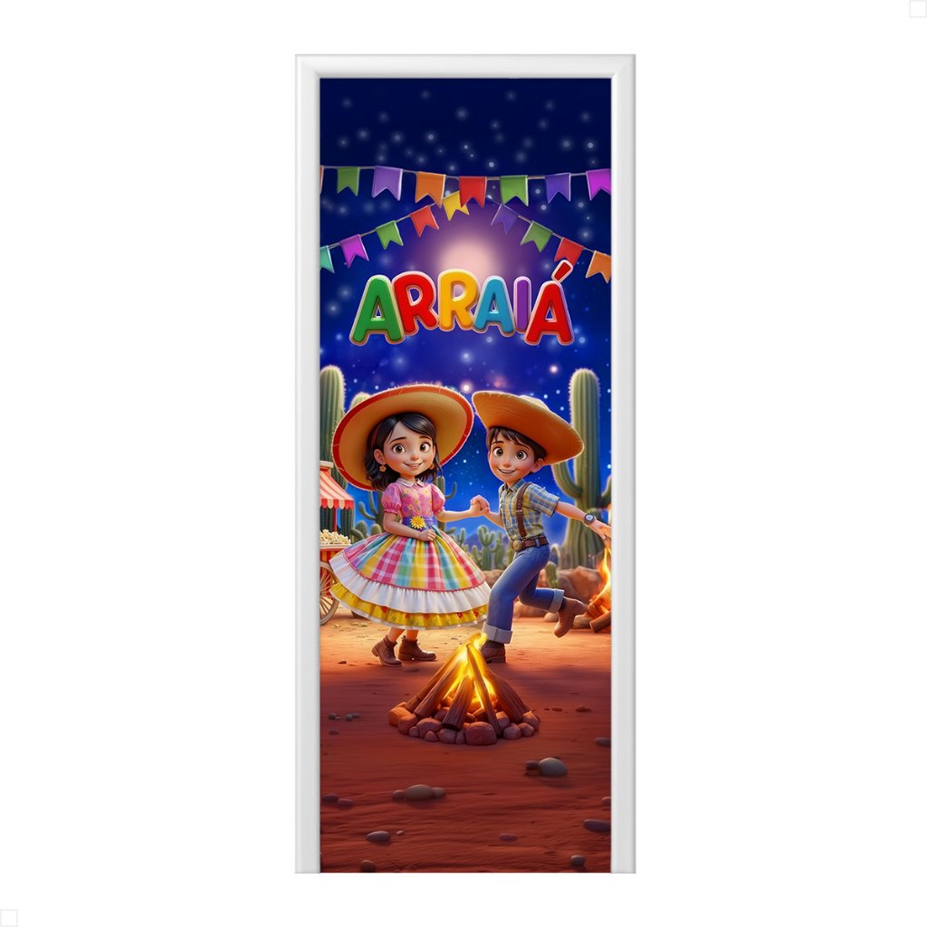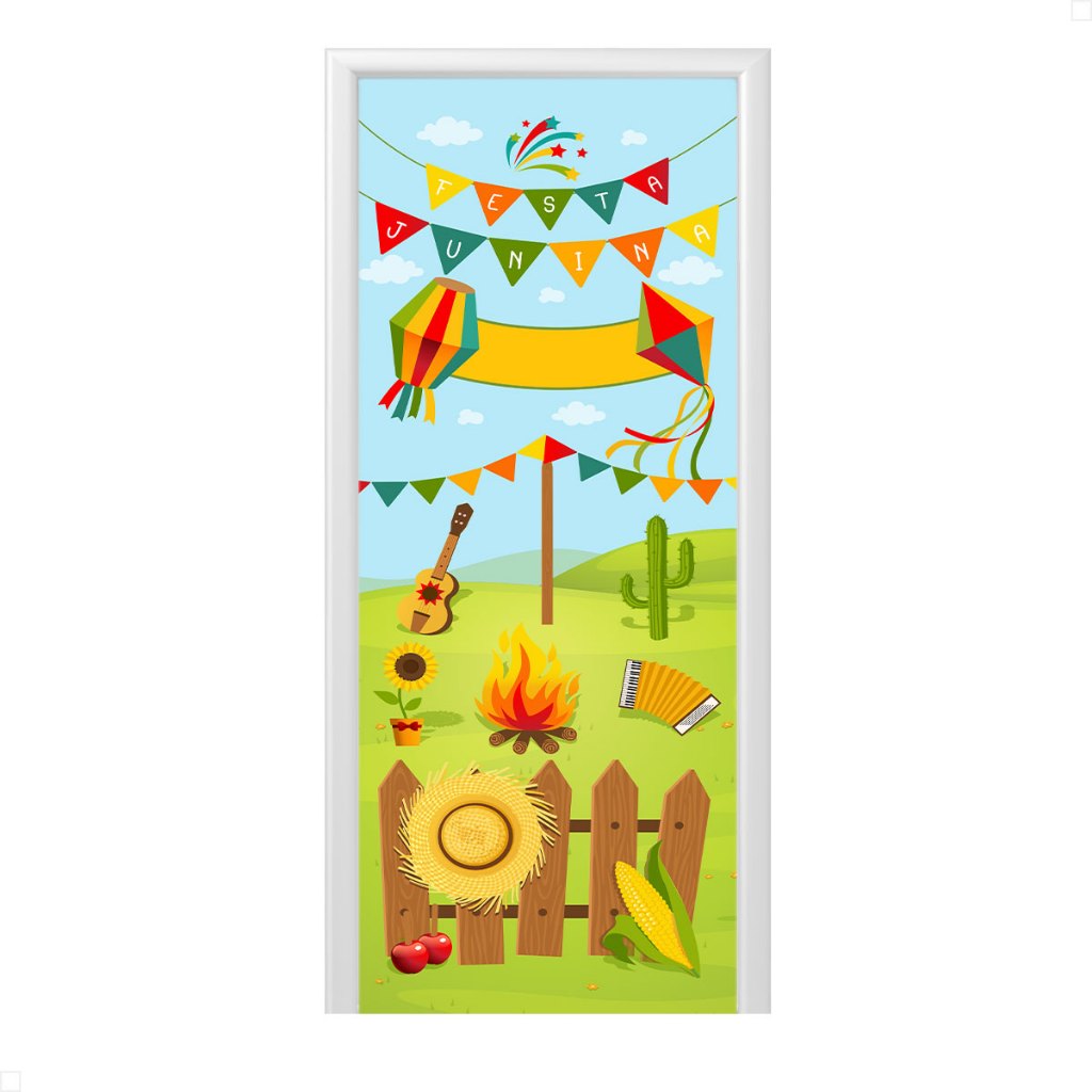 Capa de Porta Decoração Festa Junina Arraiá Sublimada Em Tecido Veste Fácil 0,80x2,10m