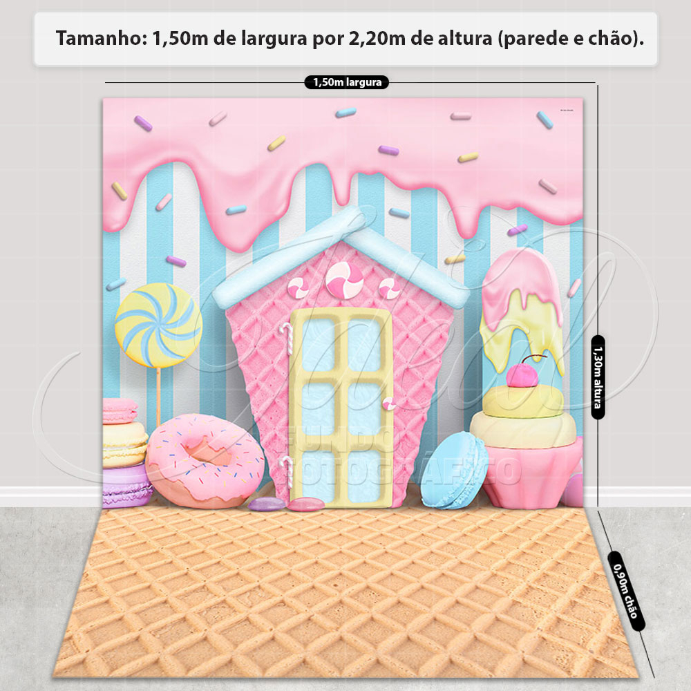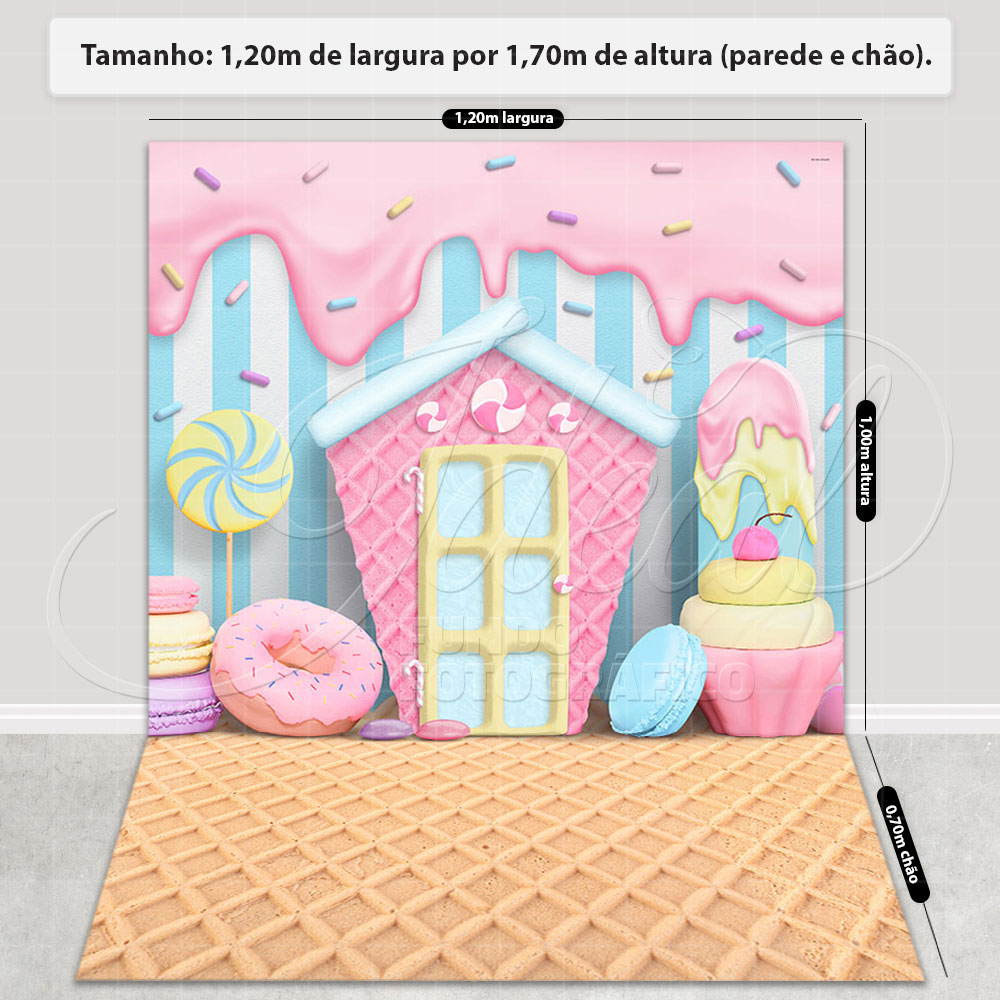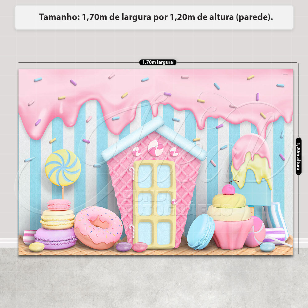 Fundo Fotográfico Infantil Cenário Docinhos Em Tecido Sublimado Painel para Fotos