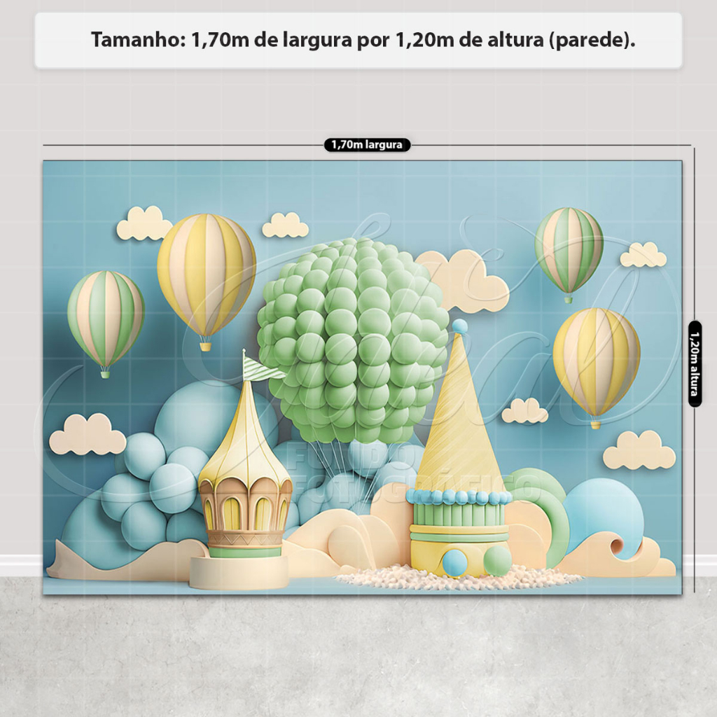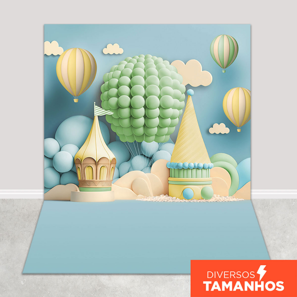 Fundo Fotográfico Smash The Cake 3D Balões Castelo Menino Em Tecido FFC-850