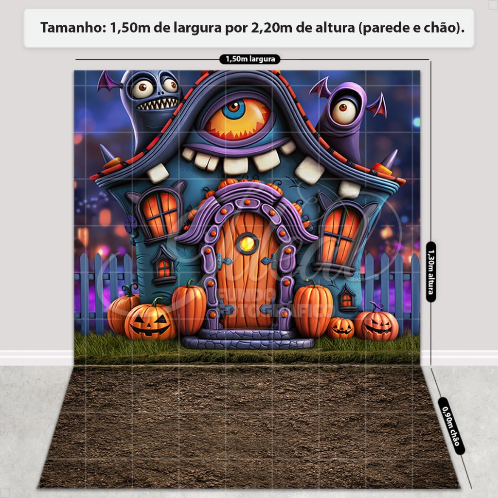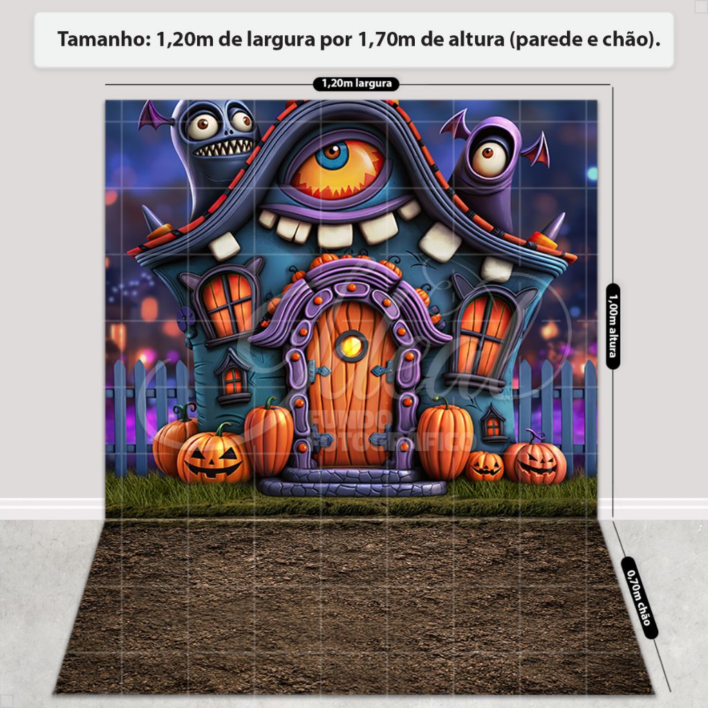 Fundo Fotográfico Halloween Cenário Casa Monstro Painel Em Tecido Sublimado para Foto - FFH-113