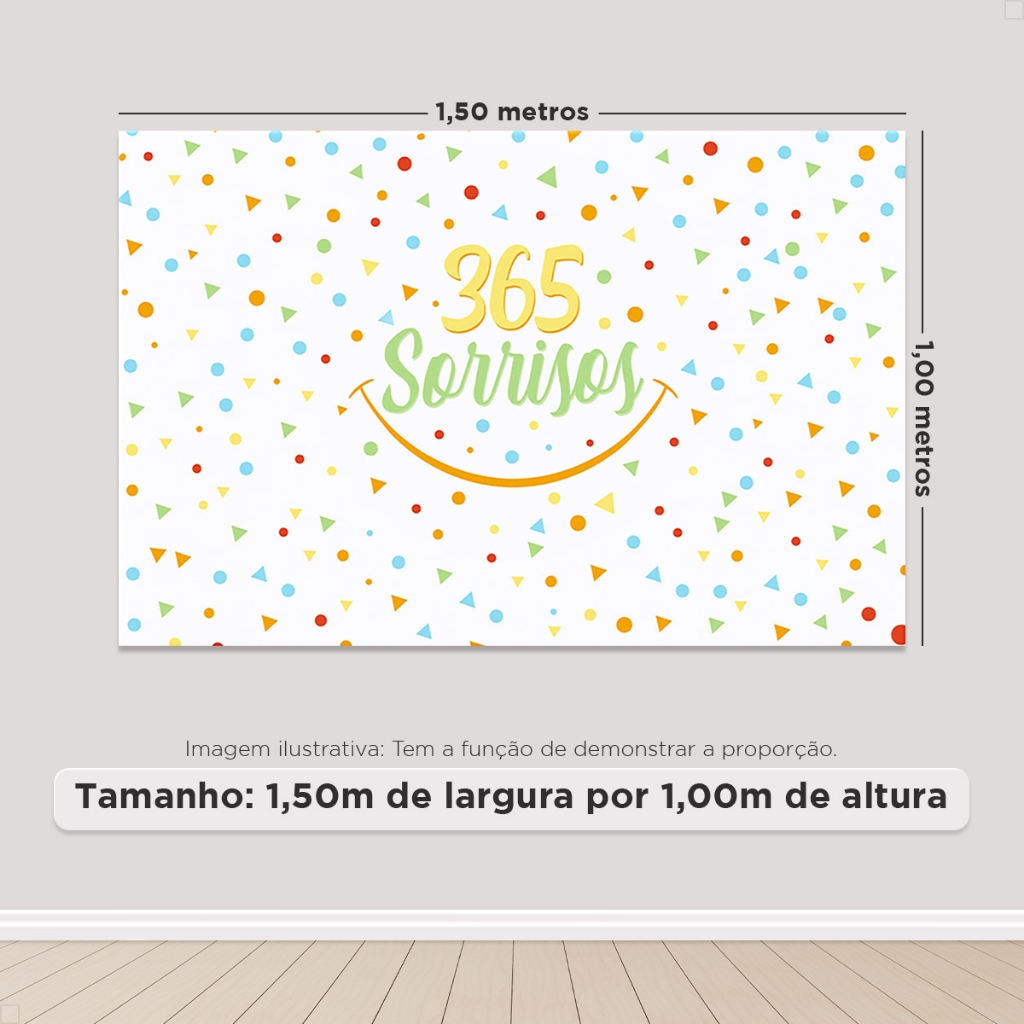 Painel Retangular Festa 365 Sorrisos Horizontal Decoração Sublimado Em Tecido