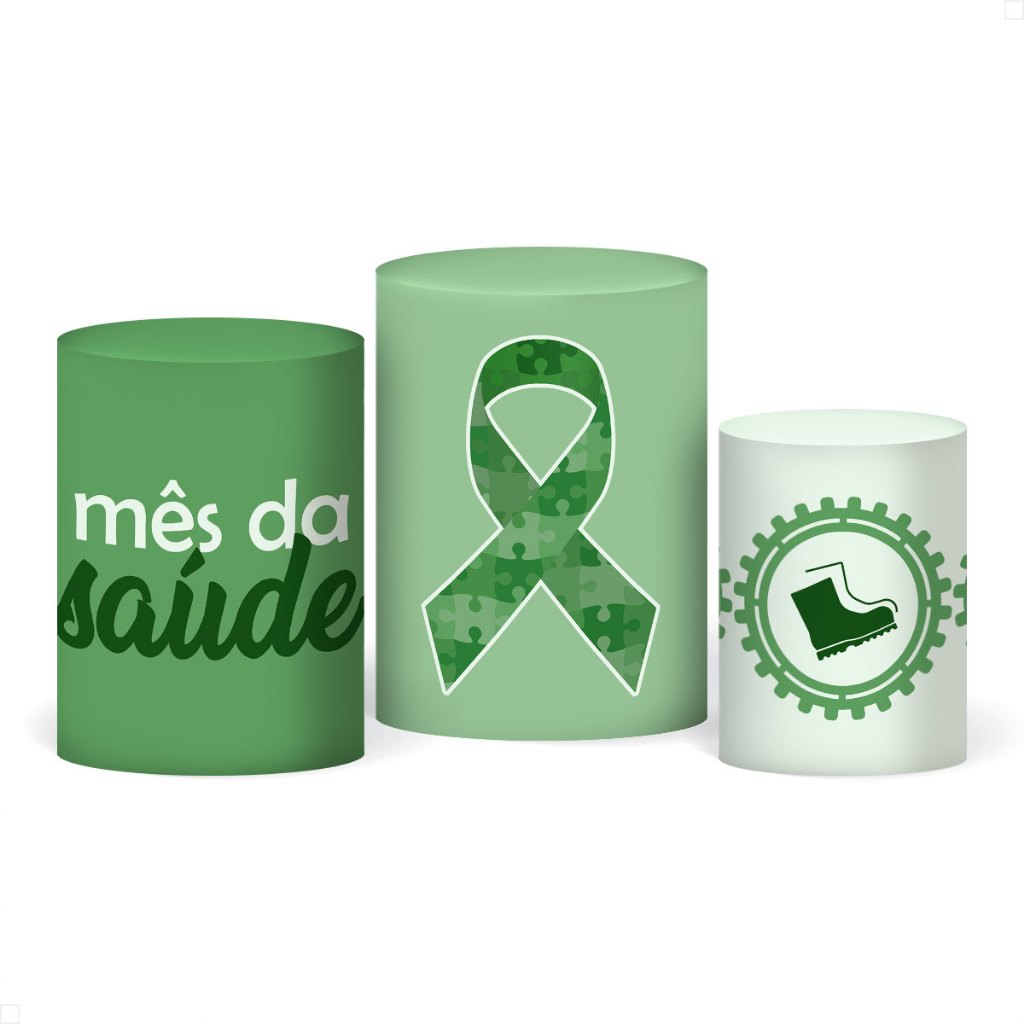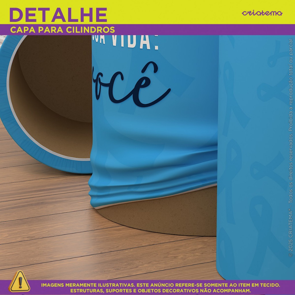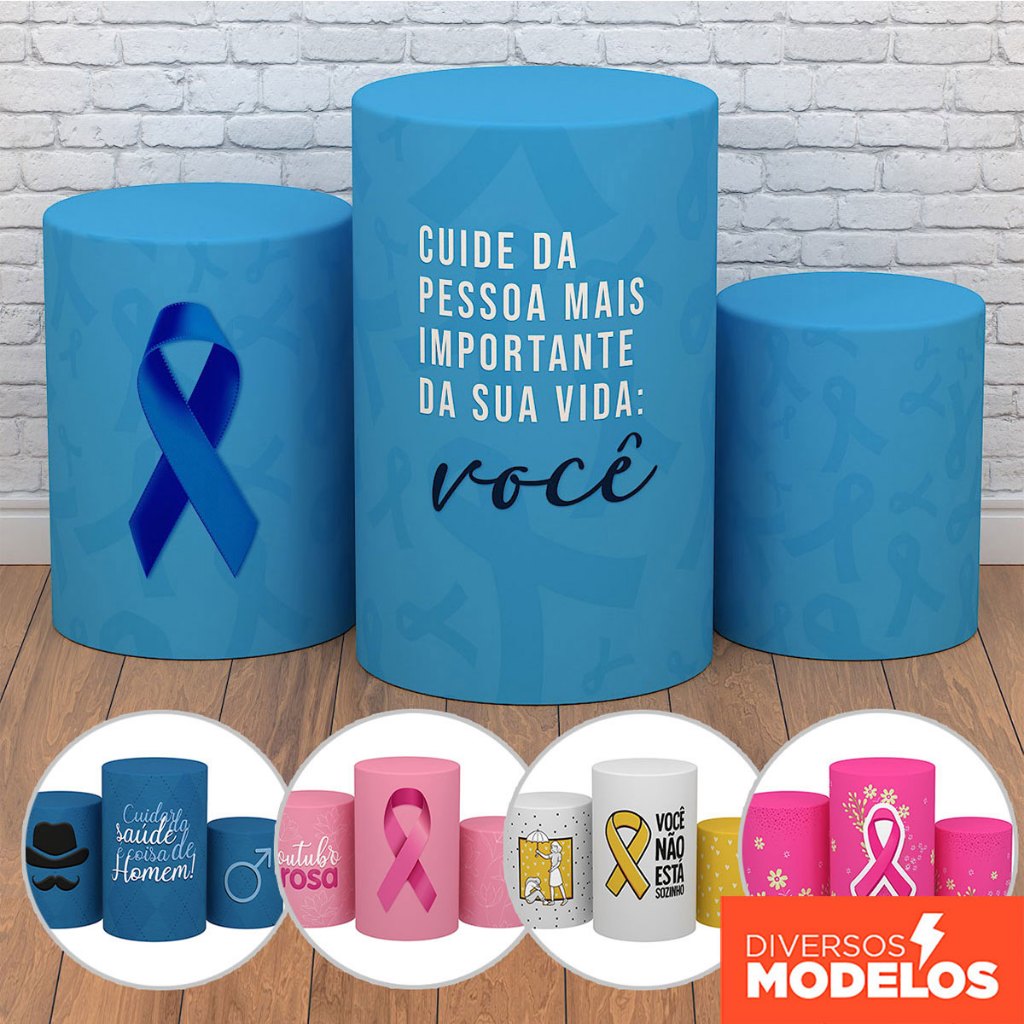 Trio Capa Cilindro Decoração Outubro Rosa/Novembro Azul Conscientização em Tecido com Elástico