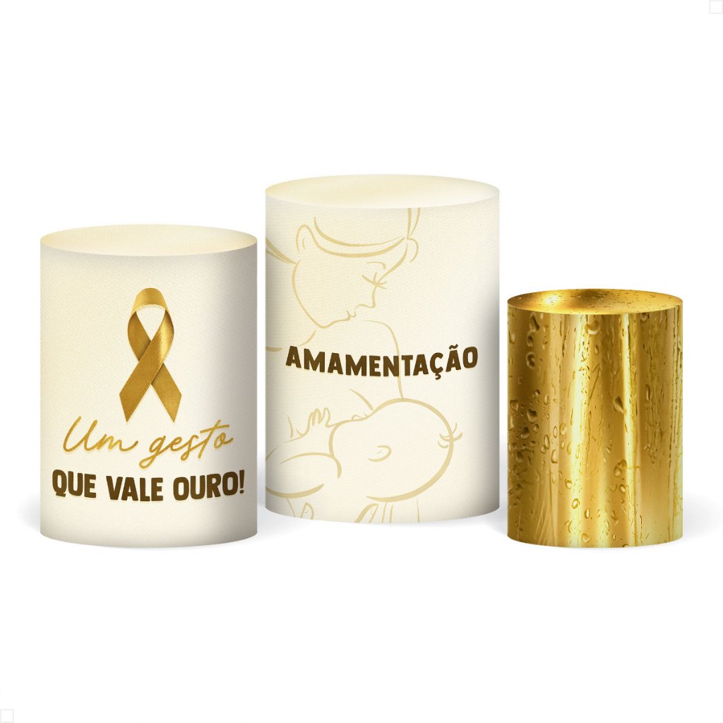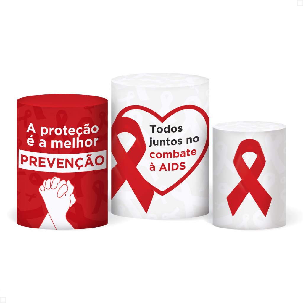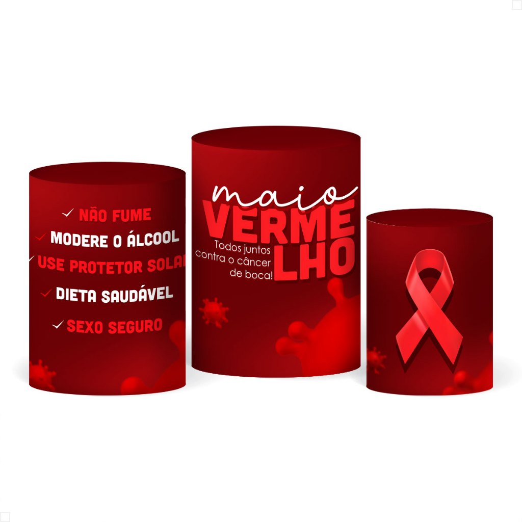 Trio Capa Cilindro Decoração Outubro Rosa/Novembro Azul Conscientização em Tecido com Elástico