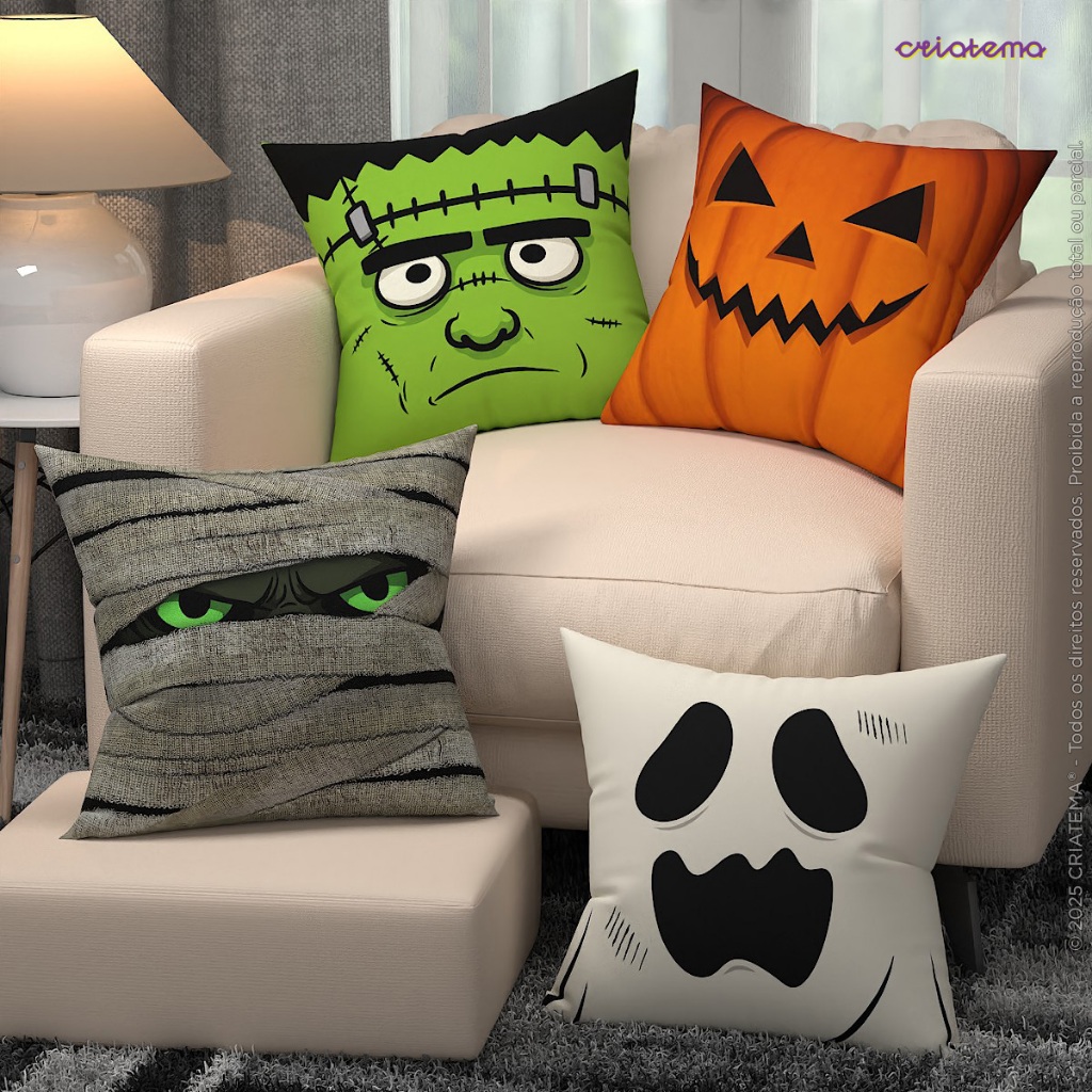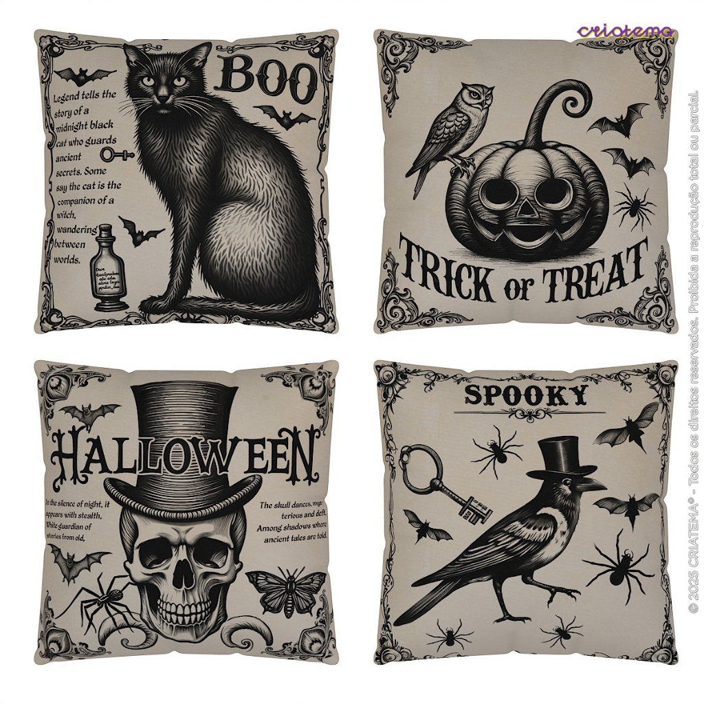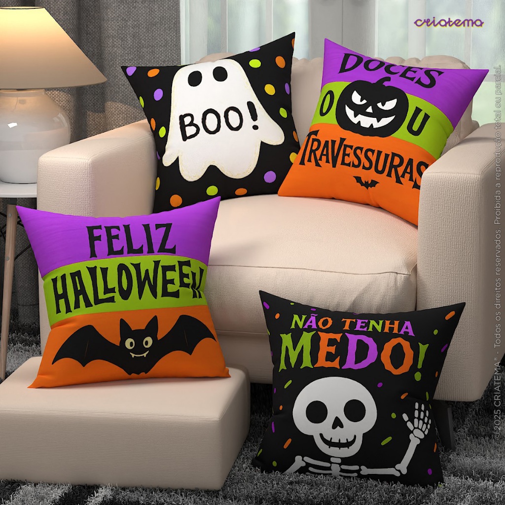 Kit 4 Capas de Almofada 45x45cm Decoração de Halloween para Casa Em Tecido Estampadas