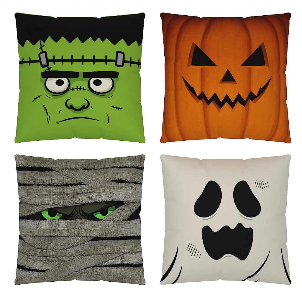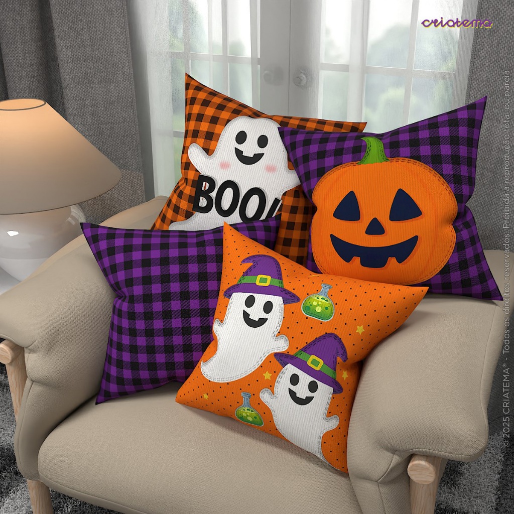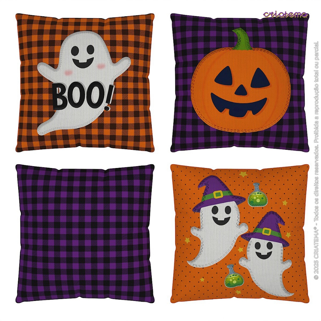 Kit 4 Capas de Almofada 45x45cm Decoração de Halloween para Casa Em Tecido Estampadas