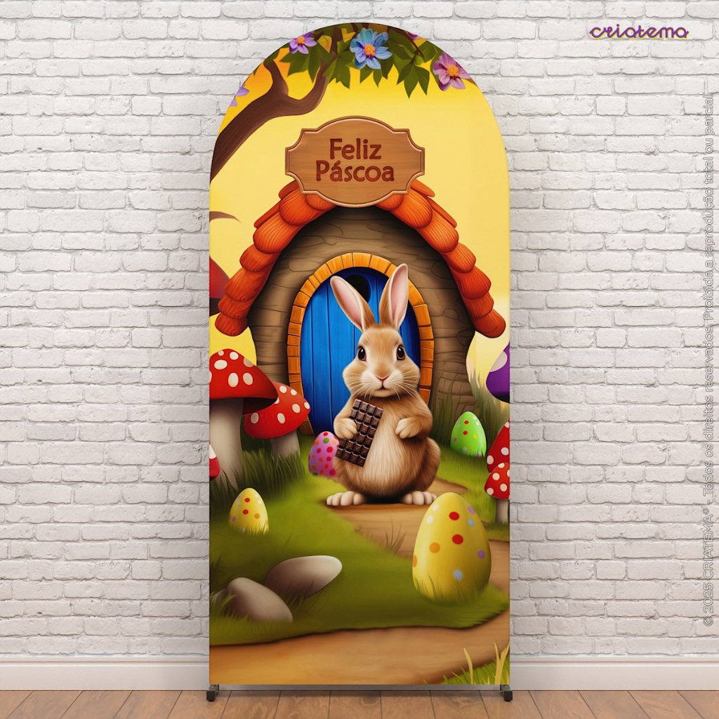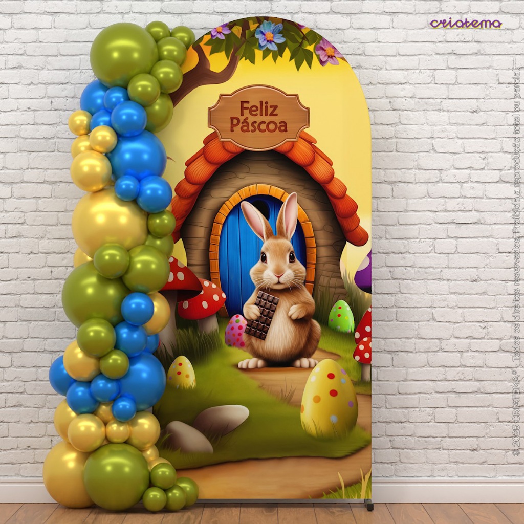 Capa Painel Romano Feliz Páscoa Decoração para Festa Em Tecido com Elástico 2x1m Veste Fácil