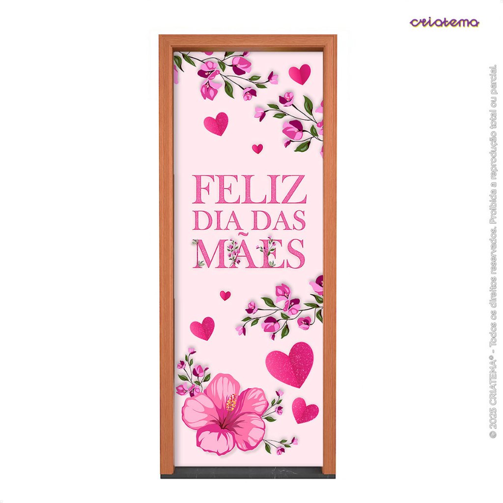 Capa de Porta Dia das Mães Floral Decorativa Veste Fácil Tecido Sublimado 0,85x2,10m – PTA-39